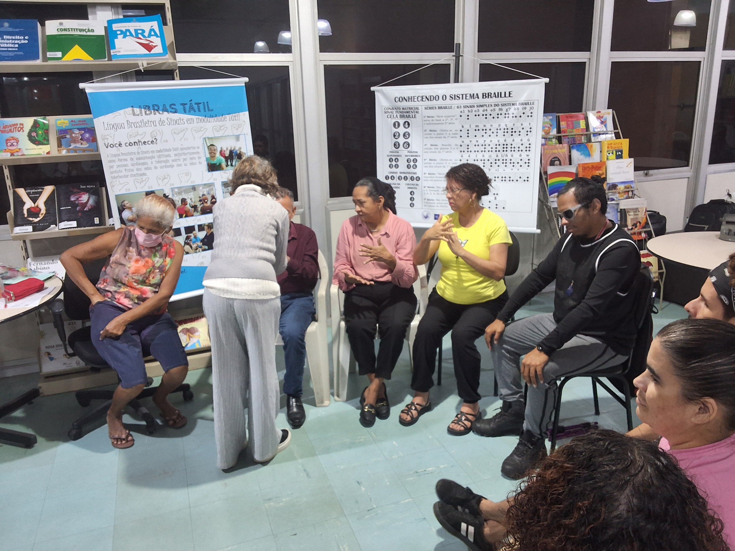 No dia 16 de março, realizamos a nossa oficina de Libras tátil na Seção Braille, no segundo andar da Biblioteca Arthur Viana em um momento marcado por aprendizado, troca e muita sensibilidade. A atividade foi voltada para a comunicação por meio do toque, destacando a importância de tornar a interação mais acessível e inclusiva.
