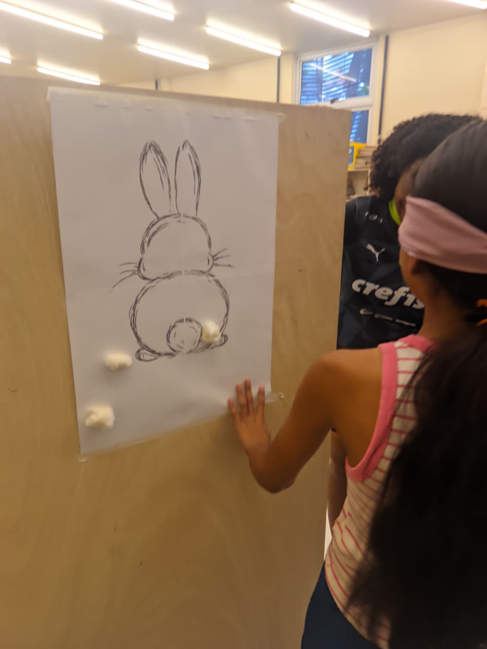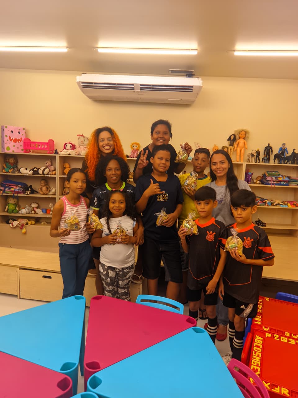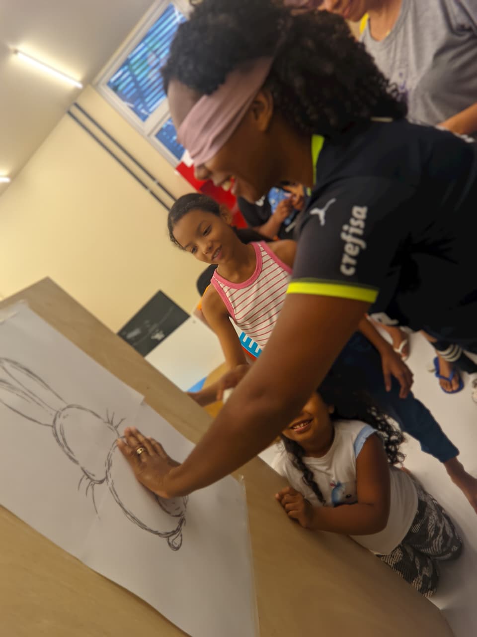 Em clima de Páscoa, a atividade promoveu a união e a alegria entre as crianças, que riram e se divertiram enquanto tentavam acertar o rabo do coelho. A brincadeira, que à primeira vista pode parecer simples, revelou-se uma ferramenta valiosa para o desenvolvimento das habilidades motoras e sociais das crianças, mostrando mais uma vez que, às vezes, as atividades mais divertidas são as que mais ensinam. A Biblioteca da Usipaz Bruno Sechi mais uma vez se destaca por proporcionar experiências enriquecedoras e inesquecíveis para a comunidade do Bengui.