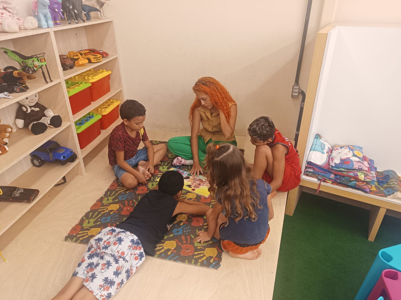 Durante a atividade, as crianças demonstraram grande interesse e curiosidade, interagindo com entusiasmo e encantamento com a narrativa. O momento foi marcado por sorrisos, participação ativa e muitas perguntas, refletindo o impacto positivo que a história teve sobre elas.
