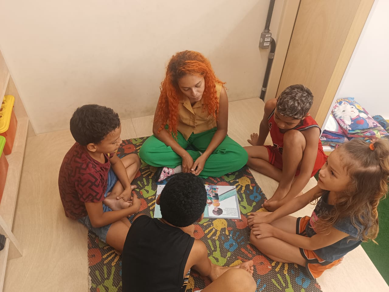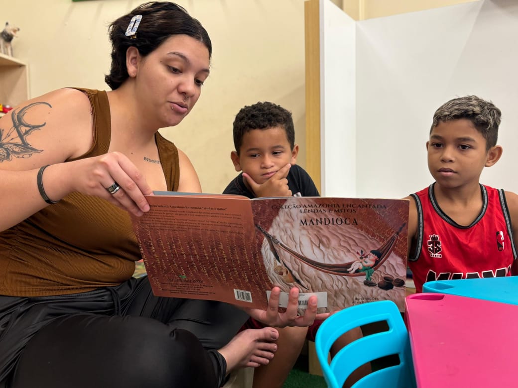 No dia 17 de setembro de 2025, a brinquedoteca do Benguí foi palco de uma atividade especial de contação de história com a lenda amazônica “Mandioca”, da coleção Amazônia Encantada – Lendas e Mitos. A ação foi conduzida pelas assistentes culturais Liliane Batista e Ediane Lorrany, com o apoio do assistente cultural Diego Borges e da Pedagoga Maria Sintia.