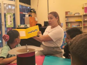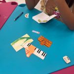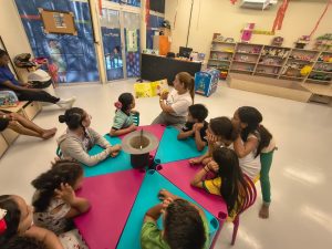 A contação de história do livro Abracadabra, de Simone Goh, encantou o público da Biblioteca Infantil a partir de sua narrativa envolvente e criativa, trazendo aspectos que se fazem presente na criação de um livro, como criatividade e imaginação. Em seguida, com muito entusiasmo, as crianças foram convidadas a construir seu próprio livro, lançando mão do que têm de sobra: histórias para contar. Para tanto, foram utilizados recortes de jornais e revistas, além de desenhos e frases elaboradas por elas. O momento foi marcado por expressividade, singularidades e ótimas narrativas.