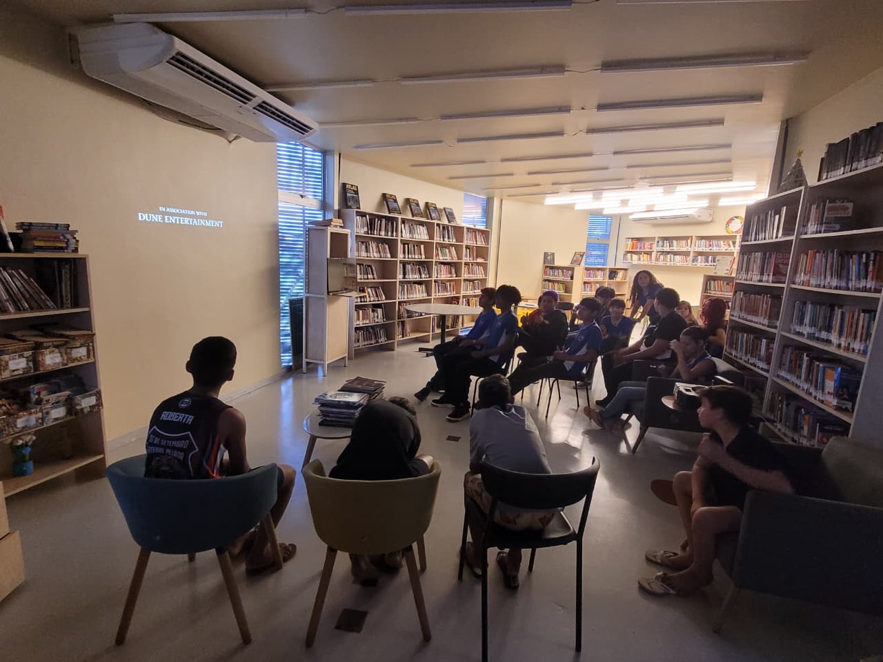 A biblioteca foi tomada por um clima de aventura, mistério e emoção com a exibição de Percy Jackson e o Ladrão de Raios, filme que transporta o público para um universo onde mitologia e realidade se encontram de forma surpreendente. A história acompanha Percy, um adolescente que descobre ser filho de um deus do Olimpo, e que precisa embarcar em uma jornada cheia de perigos para provar sua inocência e evitar uma grande guerra entre os deuses.
