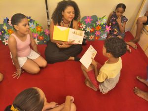 A atividade Lúdica teve o intuito de estimular a imaginação, o interesse pela leitura e o envolvimento emocional das crianças por meio da narrativa que integra personagens clássicos dos contos de fadas em um contexto natalino, destacando valores como solidariedade, gratidão, gentileza e o espírito de compartilhar. A história buscou mostrar como as trocas de afeto, representadas por cartões, presentes e quitutes oferecidos ao carteiro, constroem vínculos positivos entre os personagens e reforçam a importância dos gestos simples que tornam o Natal uma época especial, incentivando atitudes cooperativas e a valorização das relações de amizade e respeito mútuo.