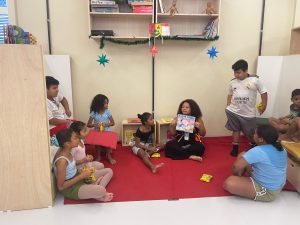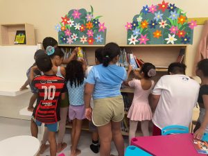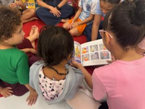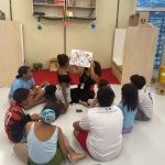 Celebrar o Dia do Livro Infantil é reconhecer a importância de oferecer às crianças o acesso a diferentes realidades por meio das histórias, ampliando horizontes e estimulando a imaginação. Com esse propósito, em comemoração ao dia 18 de abril, foi realizada a atividade “Em busca do livro perdido”, que contou com a participação animada do público. A programação foi realizada no turno da manhã e da tarde, contando com roda de conversa e dinâmica de caça aos livros, repleta de dicas e enigmas. Ao final, foi promovida uma leitura coletiva, seguida da entrega de livros como forma de incentivo e lembrança da experiência.