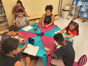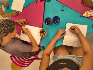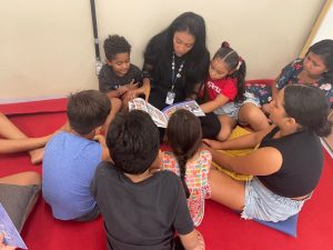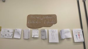 Na aventura retratada em”O livro perdido” de Margarita Surnaite, conhecemos o coelho Lucas e sua busca pelo dono de um livro amarelo. O momento intuiu  promover uma experiência sensível e reflexiva sobre encontros, histórias pessoais e coletivas que gostariamos de compartilhar. Durante a leitura as crianças puderam rememorar e refletir sobre suas vivencias e narrativas que gostariam de compartilhar. Após a leitura, foi proposta a ilustração de histórias que eles gostariam de contar, culminando na criação de um varal  intitulado “Nossas histórias na Biblioteca Infantil”.