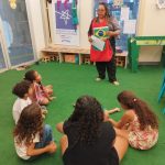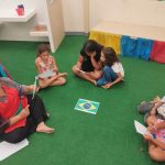 A programação contou com uma roda de canto, com a entoação do Hino Nacional Brasileiro, estimulando o respeito e a valorização dos símbolos nacionais. Em seguida, as crianças participaram da atividade de pintura da Bandeira do Brasil, utilizando técnicas simples e criativas que incentivaram a expressão artística e o reconhecimento das cores e elementos da bandeira.