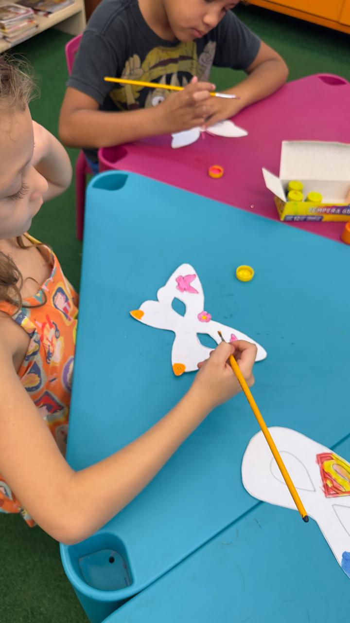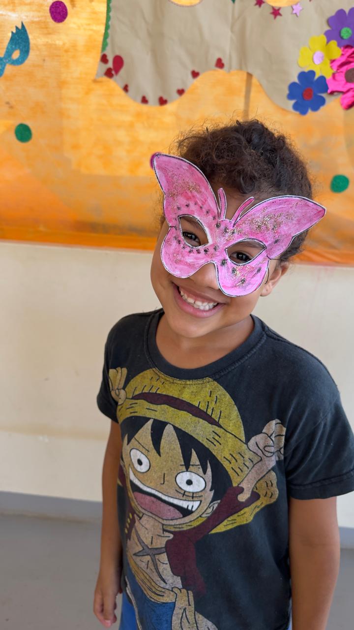 Após o momento literário, as crianças participaram de uma oficina prática, na qual confeccionaram suas próprias máscaras de Carnaval. Utilizando materiais variados e explorando cores vibrantes, cada participante pôde expressar sua imaginação, criando peças únicas e personalizadas.