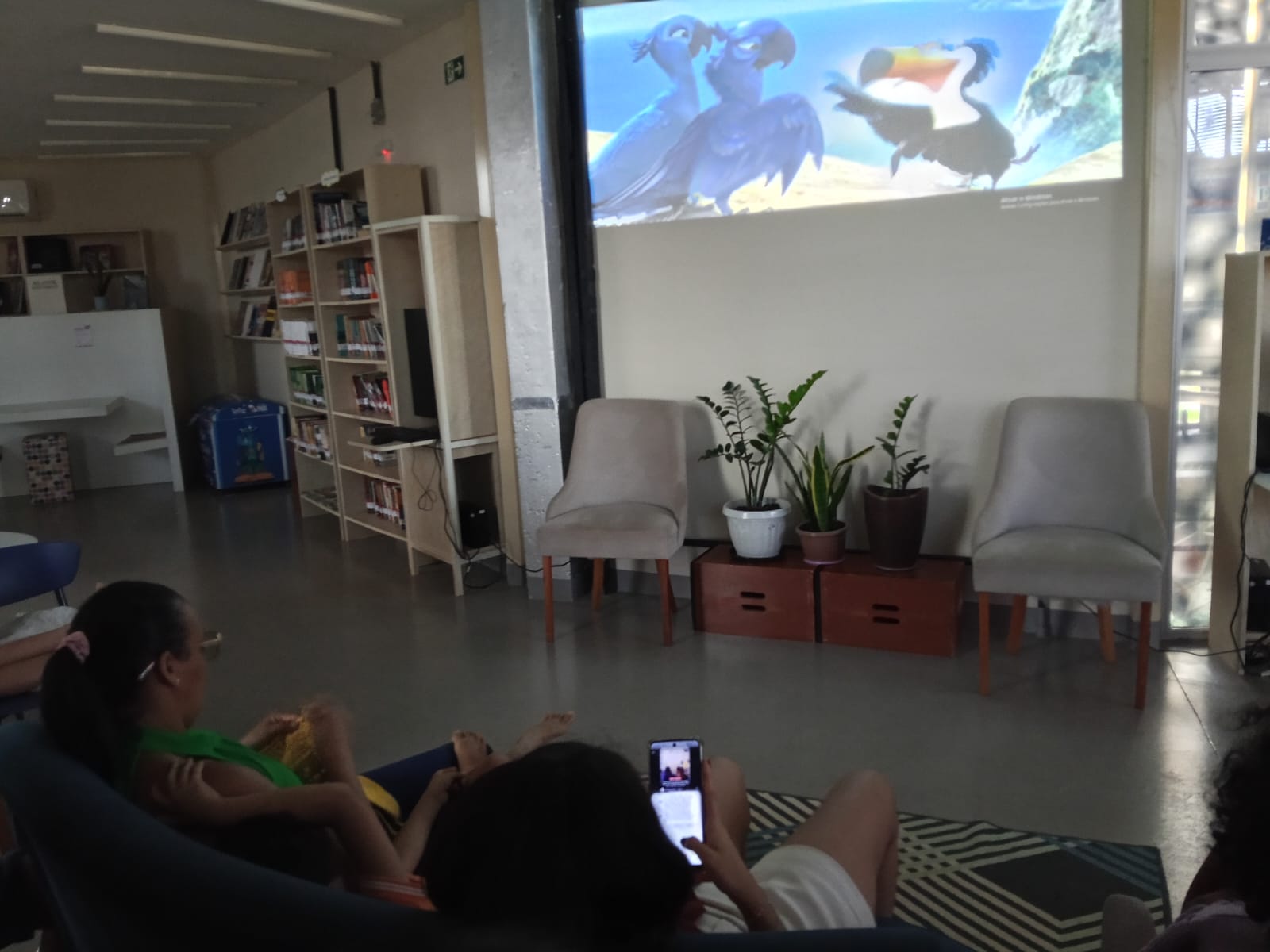 “Rio” (2011) no cine biblioteca — é um filme infantil de animação super colorido e musical