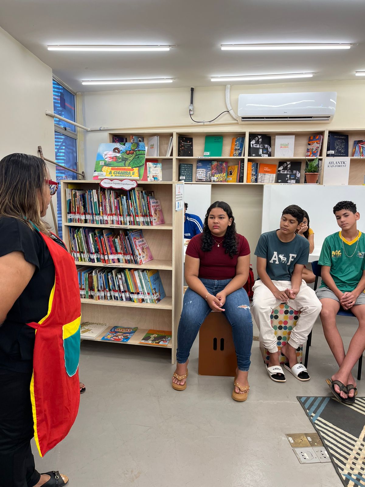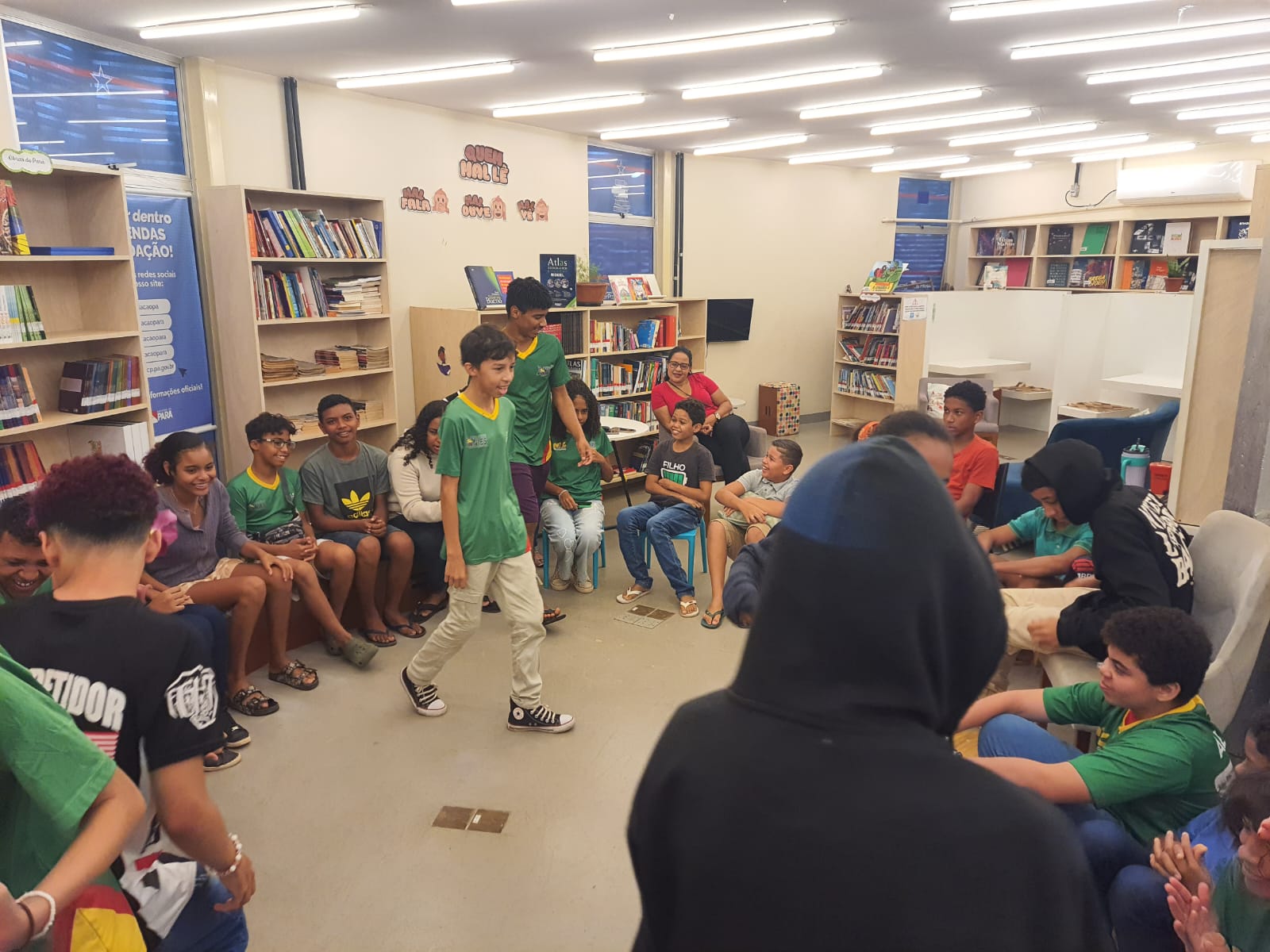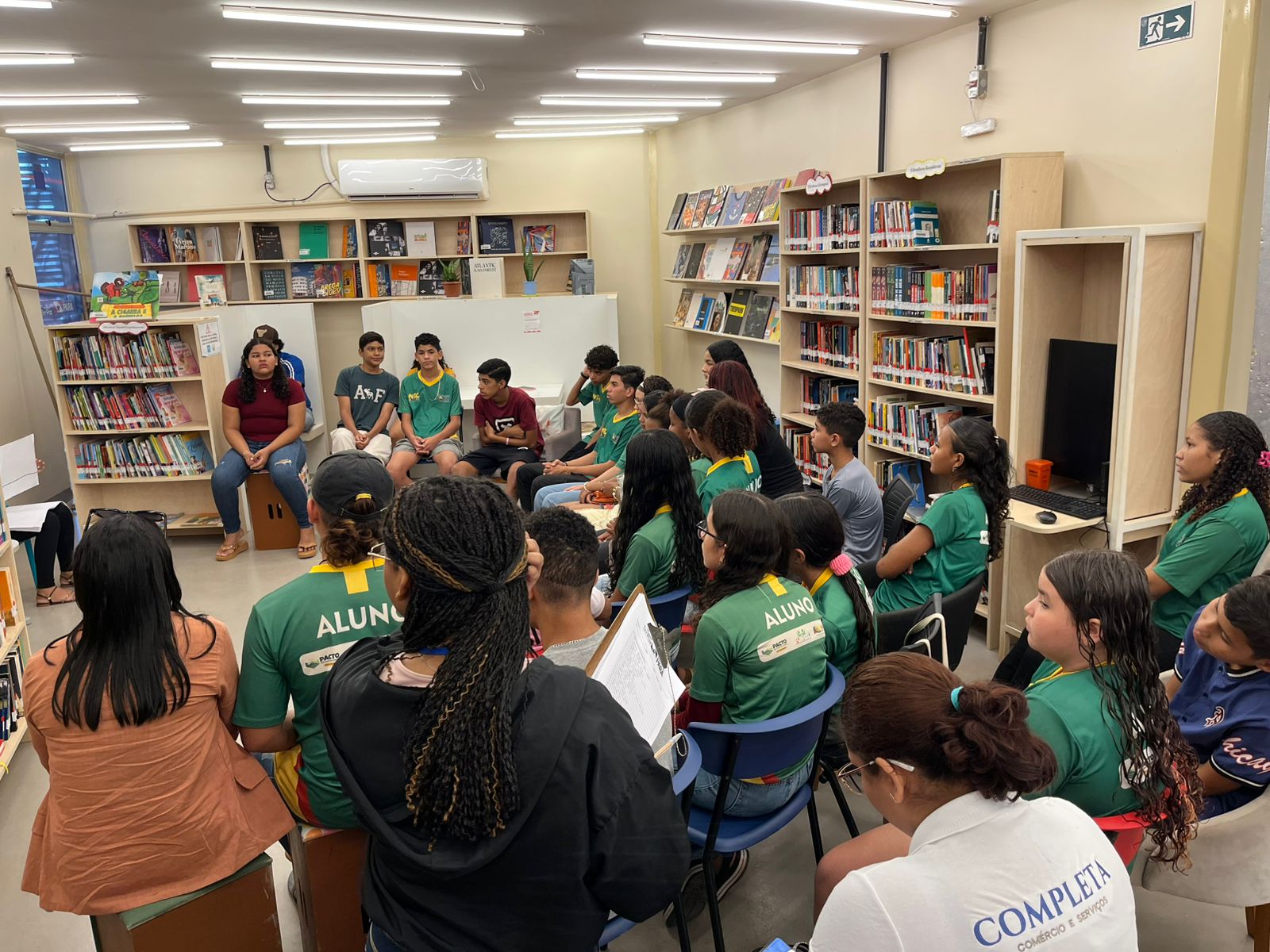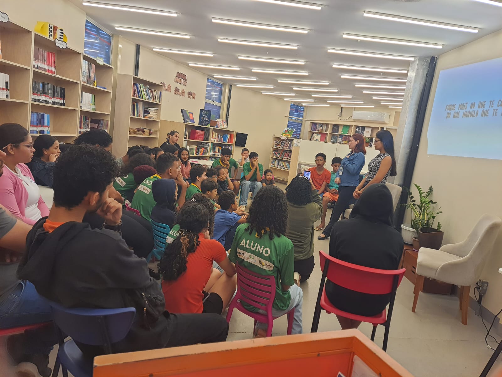 Após a contação, os adolescentes participaram de uma Roda de Conversa, espaço em que puderam expressar sentimentos, compartilhar experiências e discutir estratégias de cuidado emocional, promovendo o diálogo aberto e o fortalecimento da saúde mental.