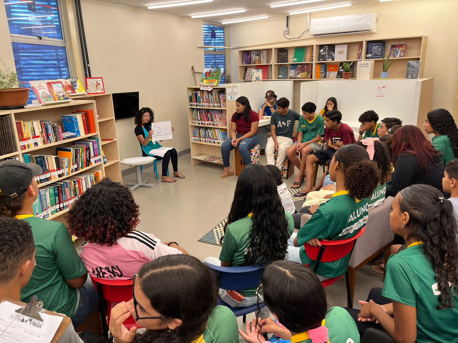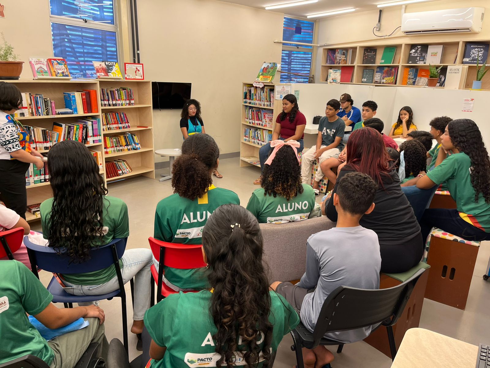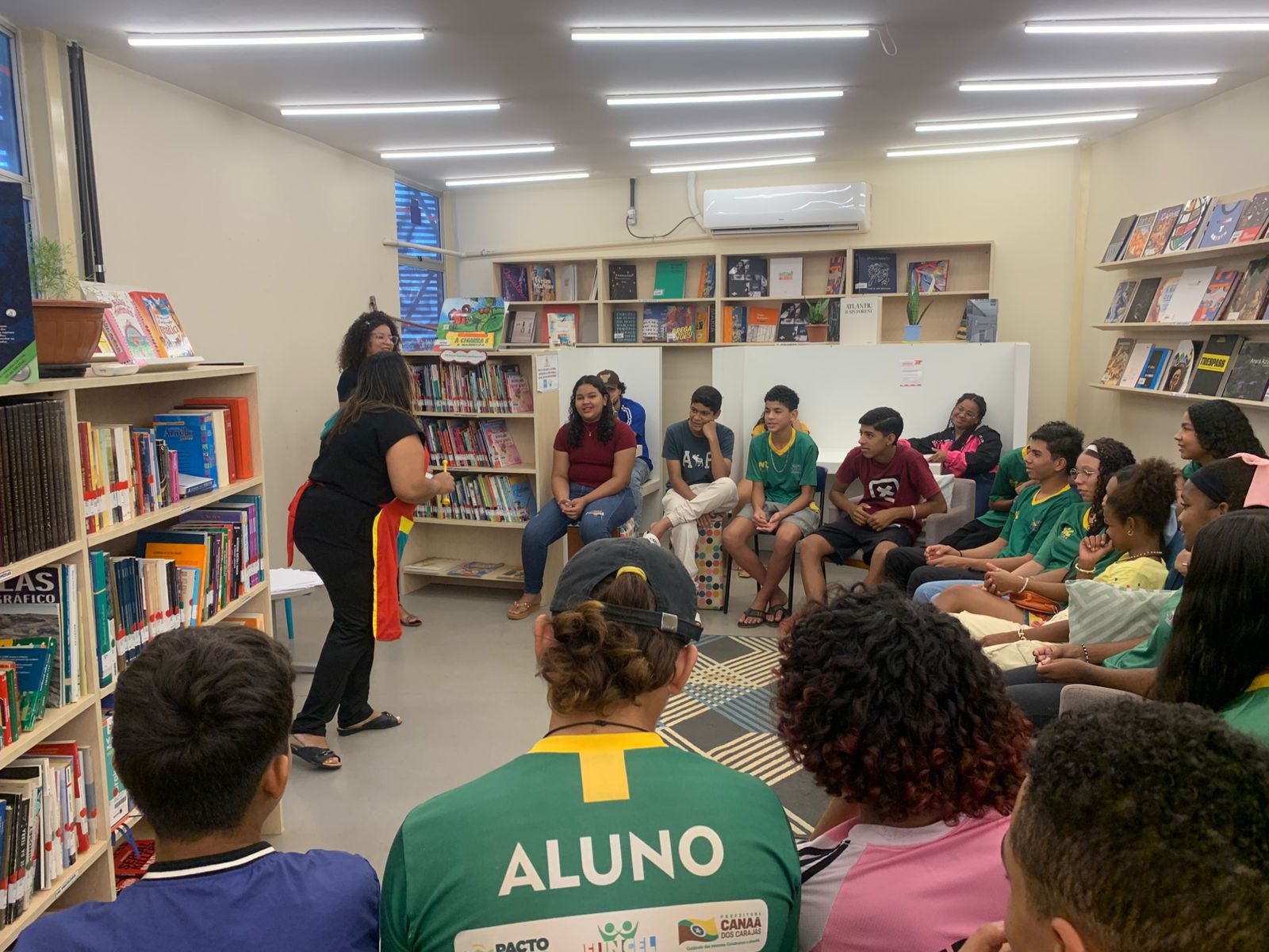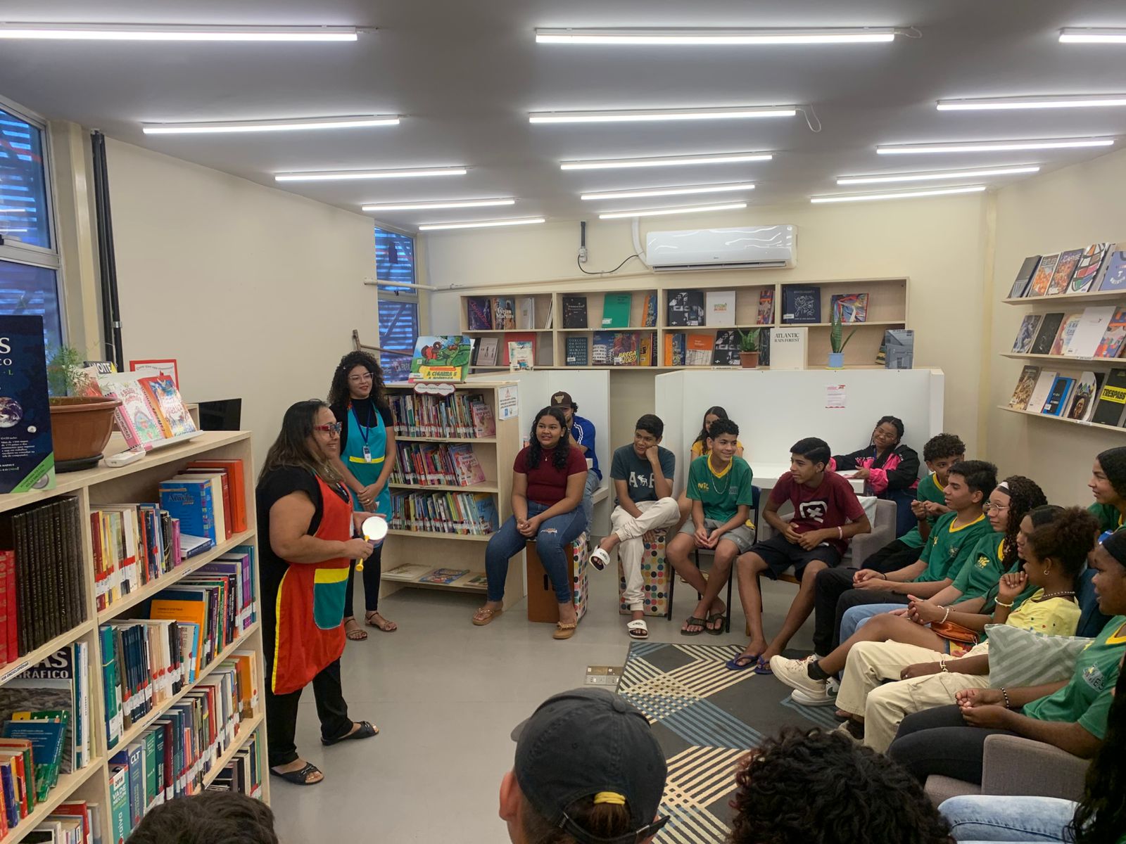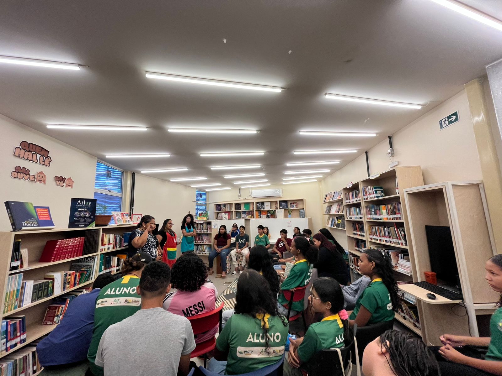 Após a contação, os adolescentes participaram de uma Roda de Conversa, espaço em que puderam expressar sentimentos, compartilhar experiências e discutir estratégias de cuidado emocional, promovendo o diálogo aberto e o fortalecimento da saúde mental.