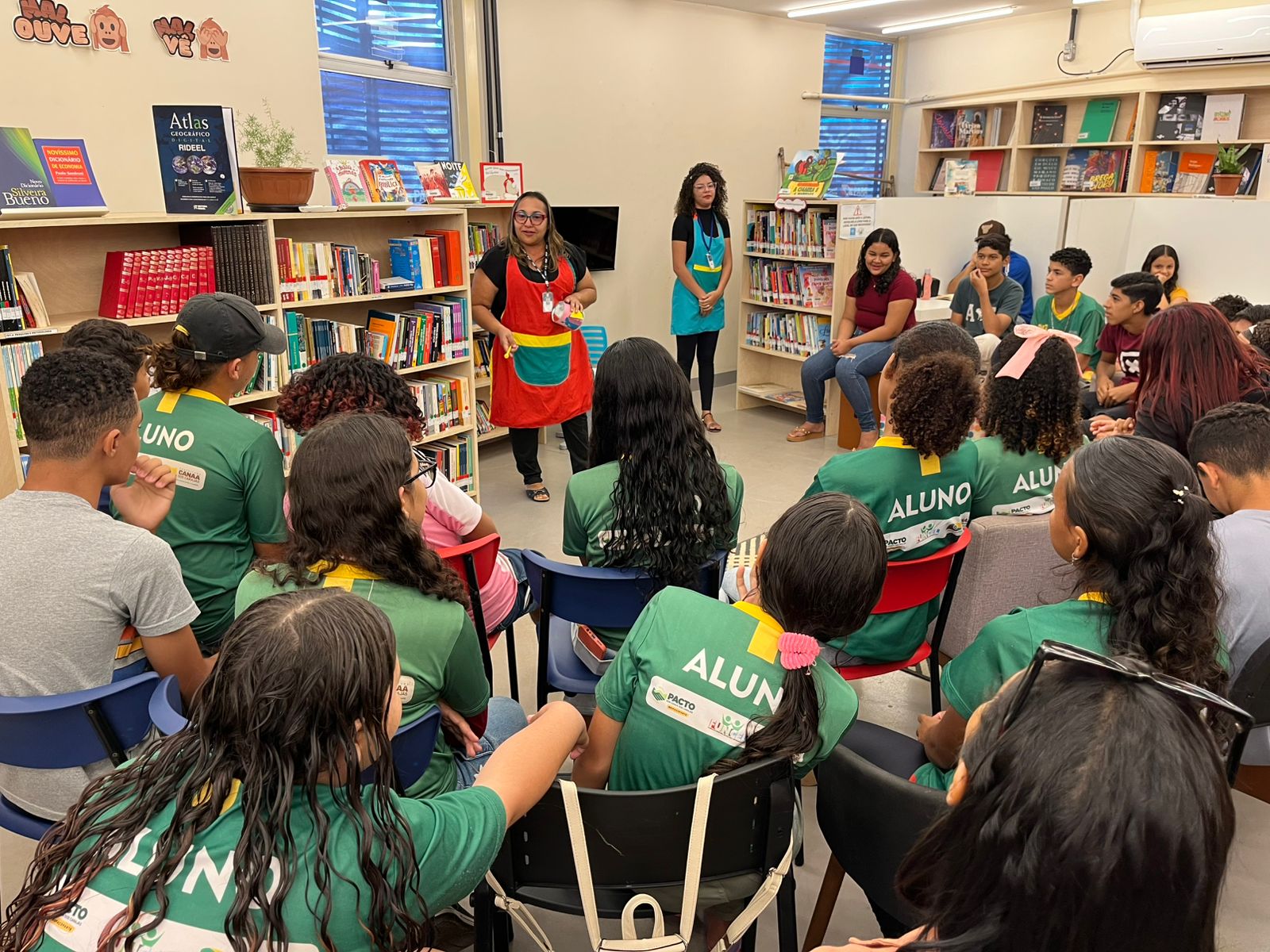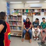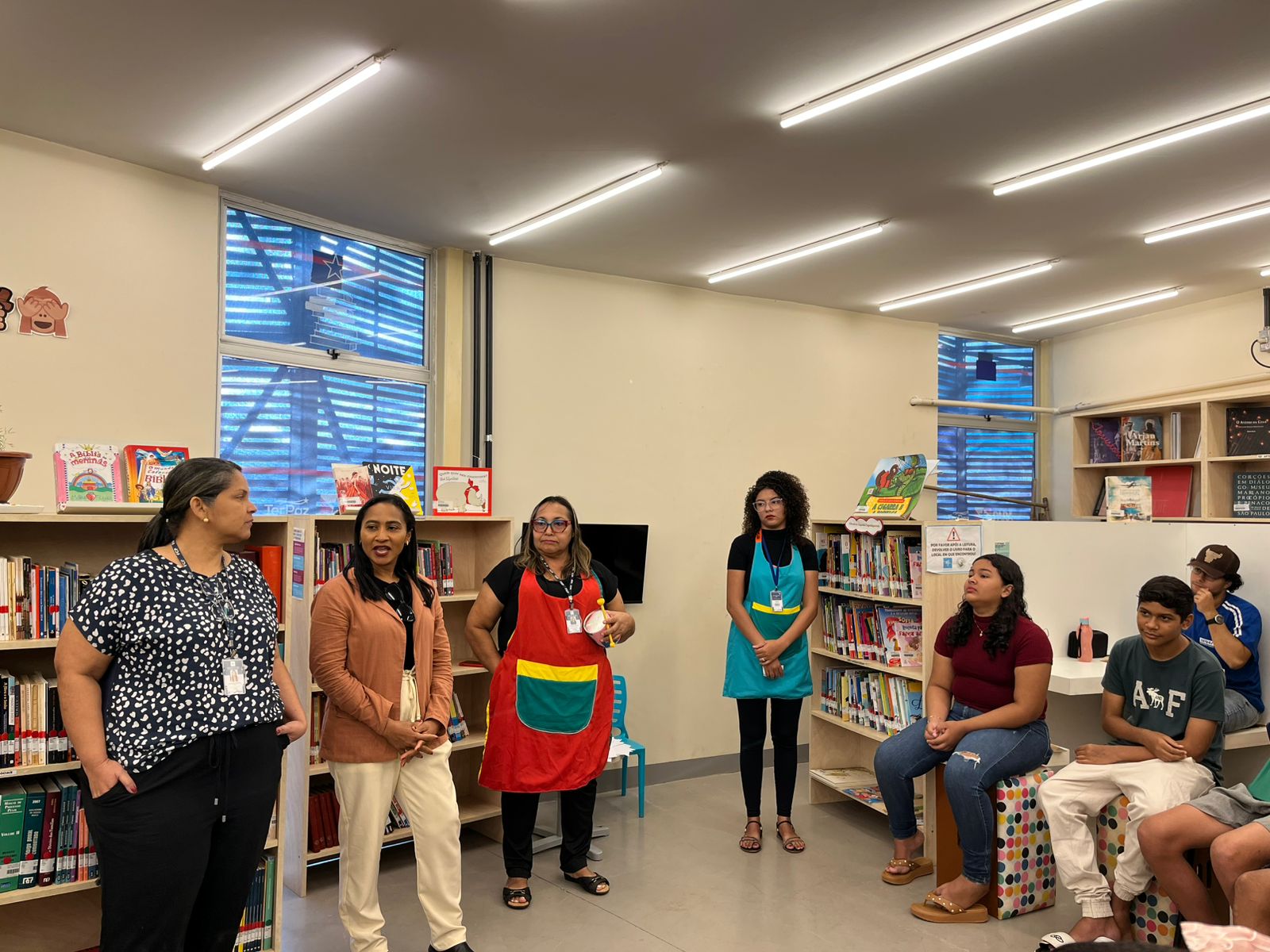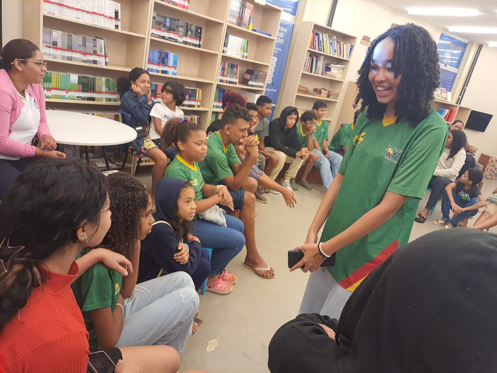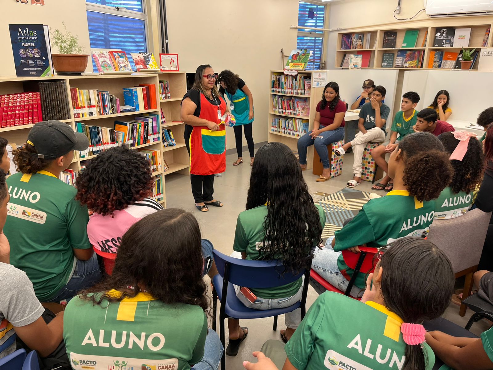 Após a contação, os adolescentes participaram de uma Roda de Conversa, espaço em que puderam expressar sentimentos, compartilhar experiências e discutir estratégias de cuidado emocional, promovendo o diálogo aberto e o fortalecimento da saúde mental.