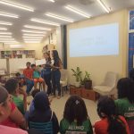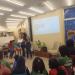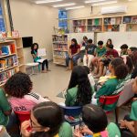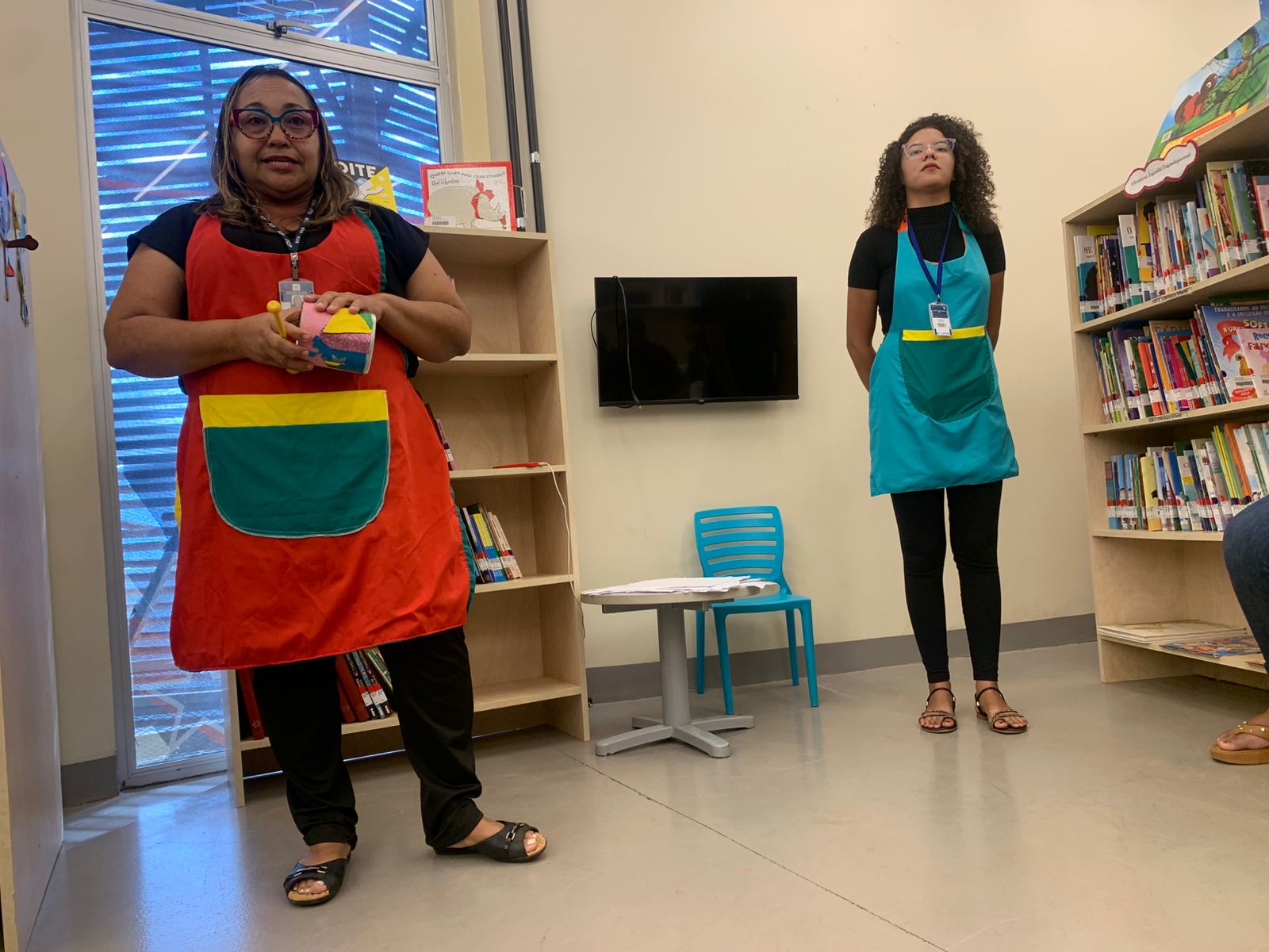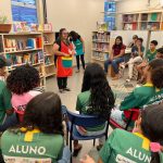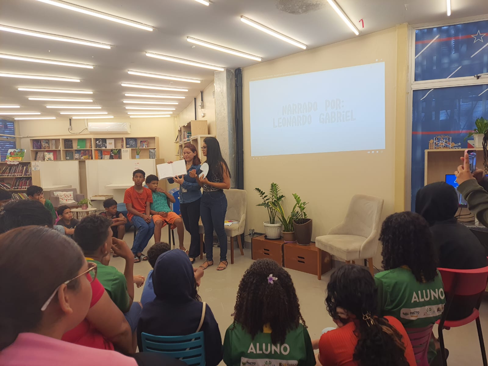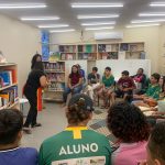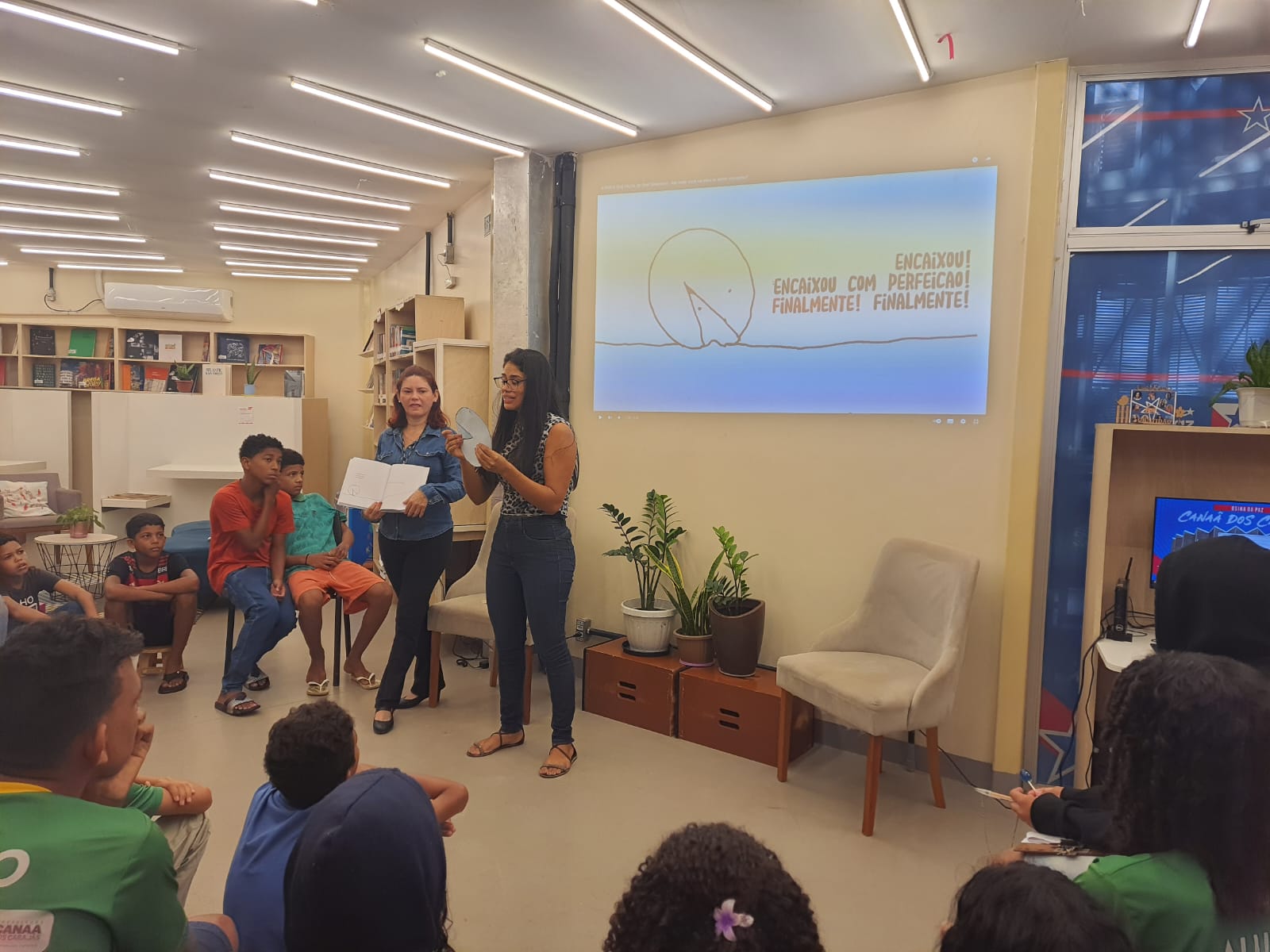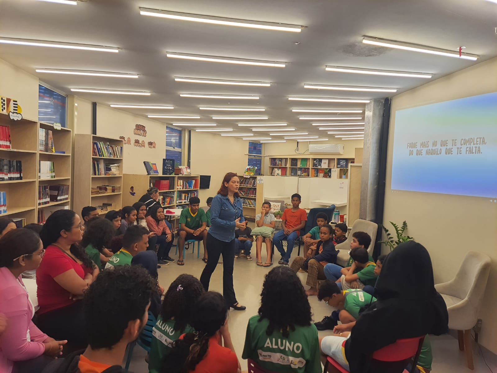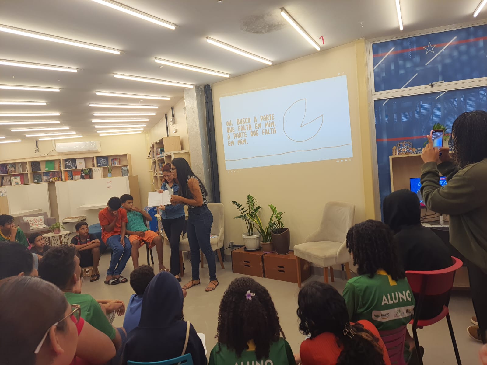 A programação iniciou-se com a contação de história do livro “A Parte que Falta”, de Shel Silverstein, que aborda temas como solidão, autoconhecimento, pertencimento e a busca por completude emocional, despertando a empatia e a reflexão sobre relações humanas e sentimentos.
