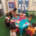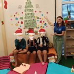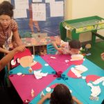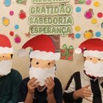 Durante a oficina, os participantes confeccionaram máscaras temáticas inspiradas no Papai Noel, utilizando materiais variados e explorando cores, texturas e elementos decorativos. A proposta incentivou a criatividade, a coordenação motora e a expressão artística, além de promover momentos de interação e cooperação entre as crianças.