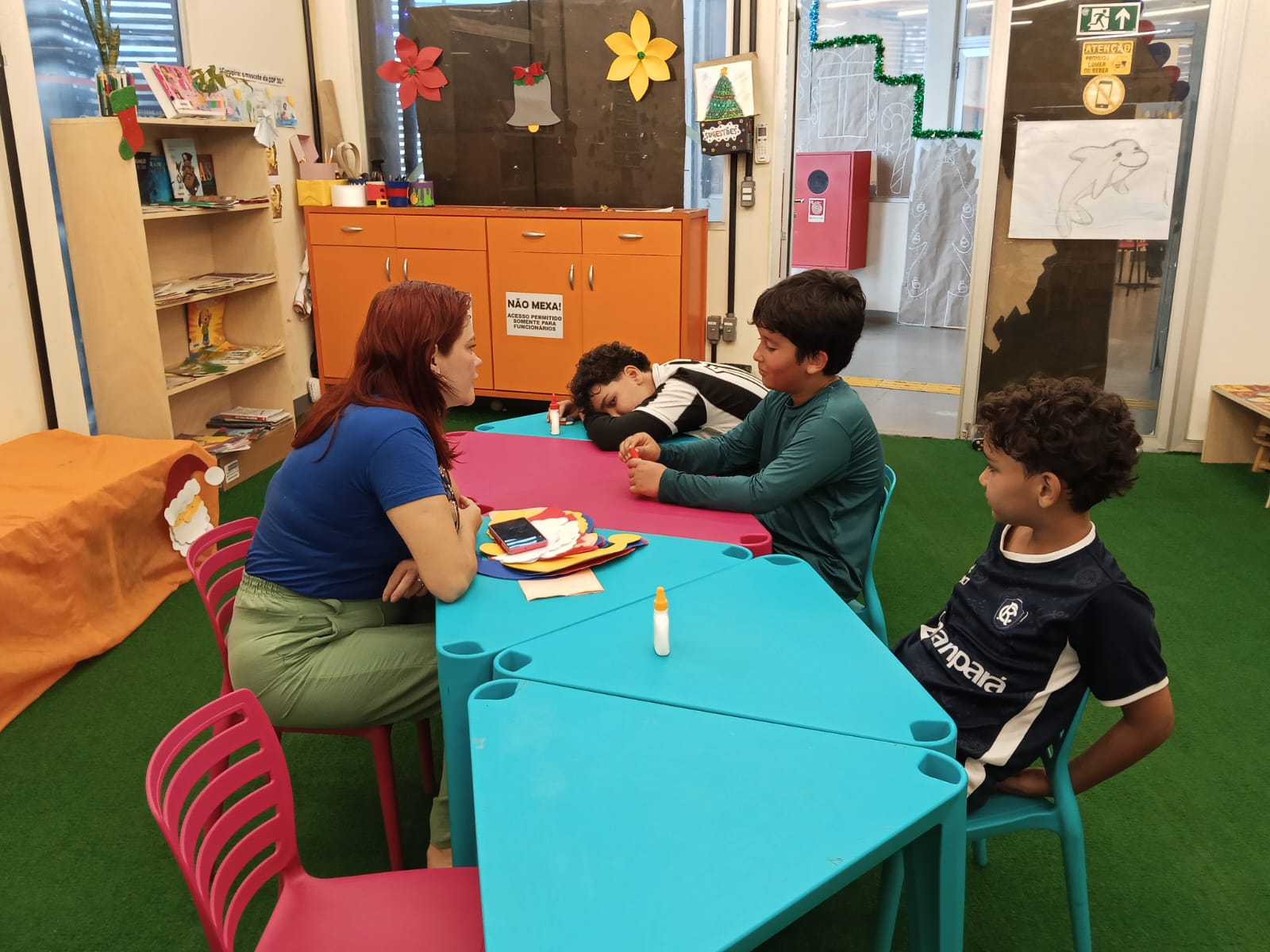 O ambiente foi marcado por entusiasmo e espírito festivo, reforçando o clima de celebração típico do período natalino. Ao final, cada criança pôde levar sua produção para casa, prolongando a experiência vivenciada no espaço cultural.