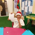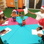 Pela manhã, as crianças participaram de uma oficina de pintura com giz de cera, tendo como tema o Papai Noel. A atividade estimulou a imaginação, a coordenação motora e a expressão artística, permitindo que cada participante colorisse e personalizasse seu desenho de maneira livre e criativa.