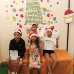 No período da tarde, foi realizada a exibição do filme Klaus, animação que aborda valores como generosidade, amizade e solidariedade, reforçando o verdadeiro significado do Natal. A sessão foi acompanhada com atenção e entusiasmo pelas crianças, que se envolveram com a narrativa e seus personagens.
