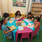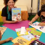 Os participantes tiveram a oportunidade de conhecer as novas obras, explorar capas, títulos e ilustrações, além de ouvir trechos selecionados pela equipe mediadora. O momento favoreceu a interação, permitindo que cada criança compartilhasse impressões, escolhesse livros de seu interesse e participasse da leitura coletiva.