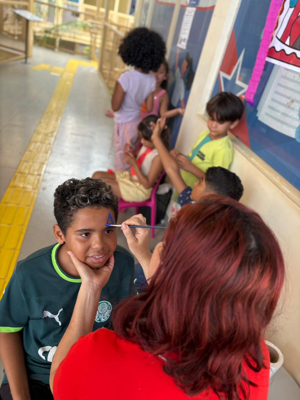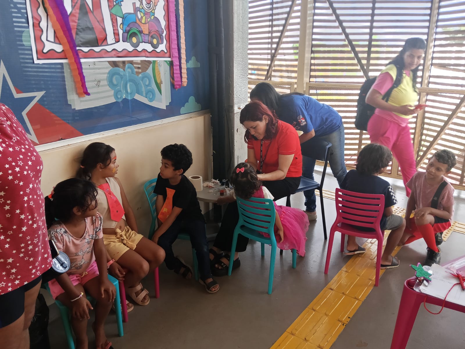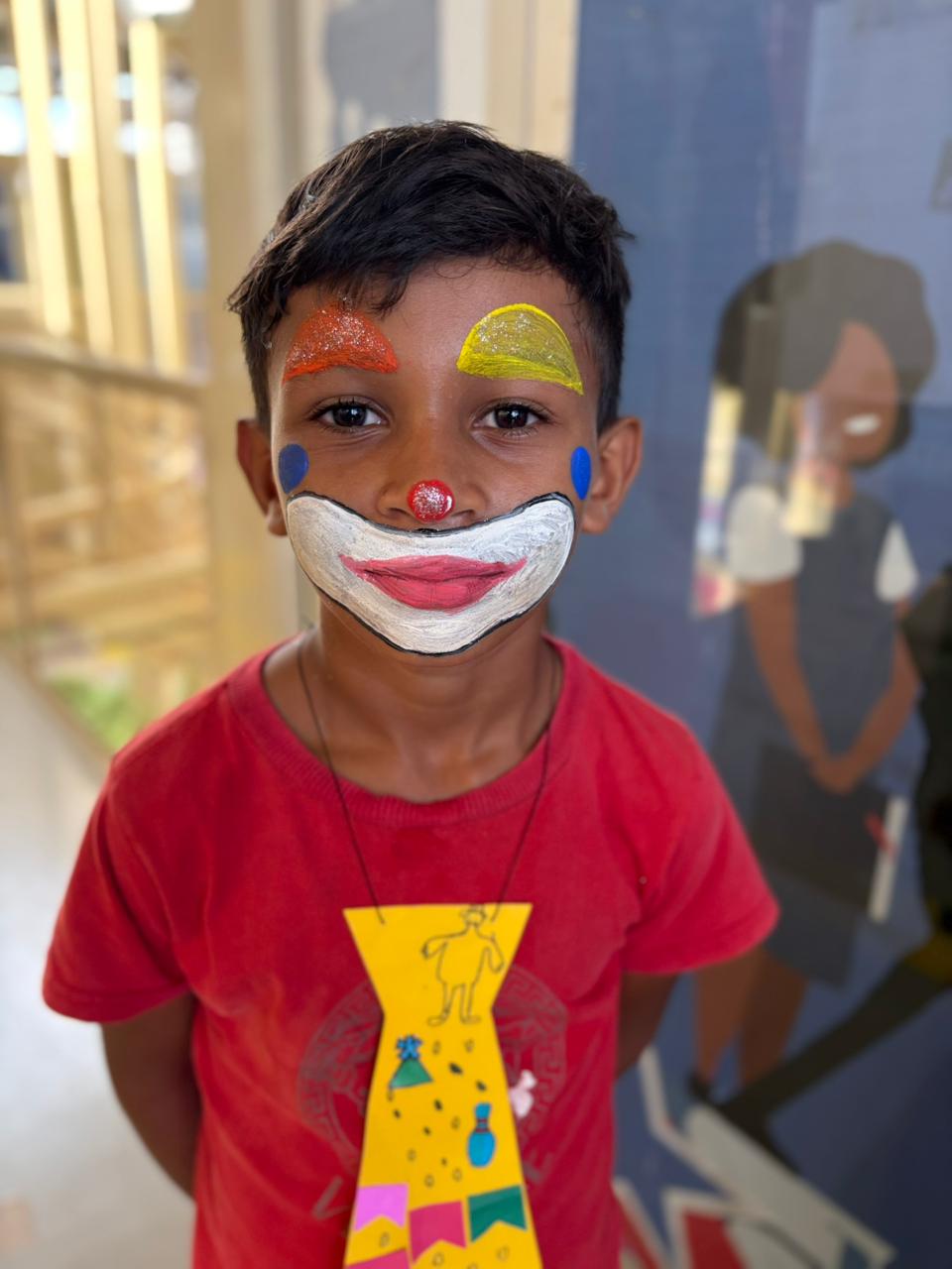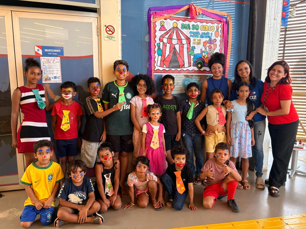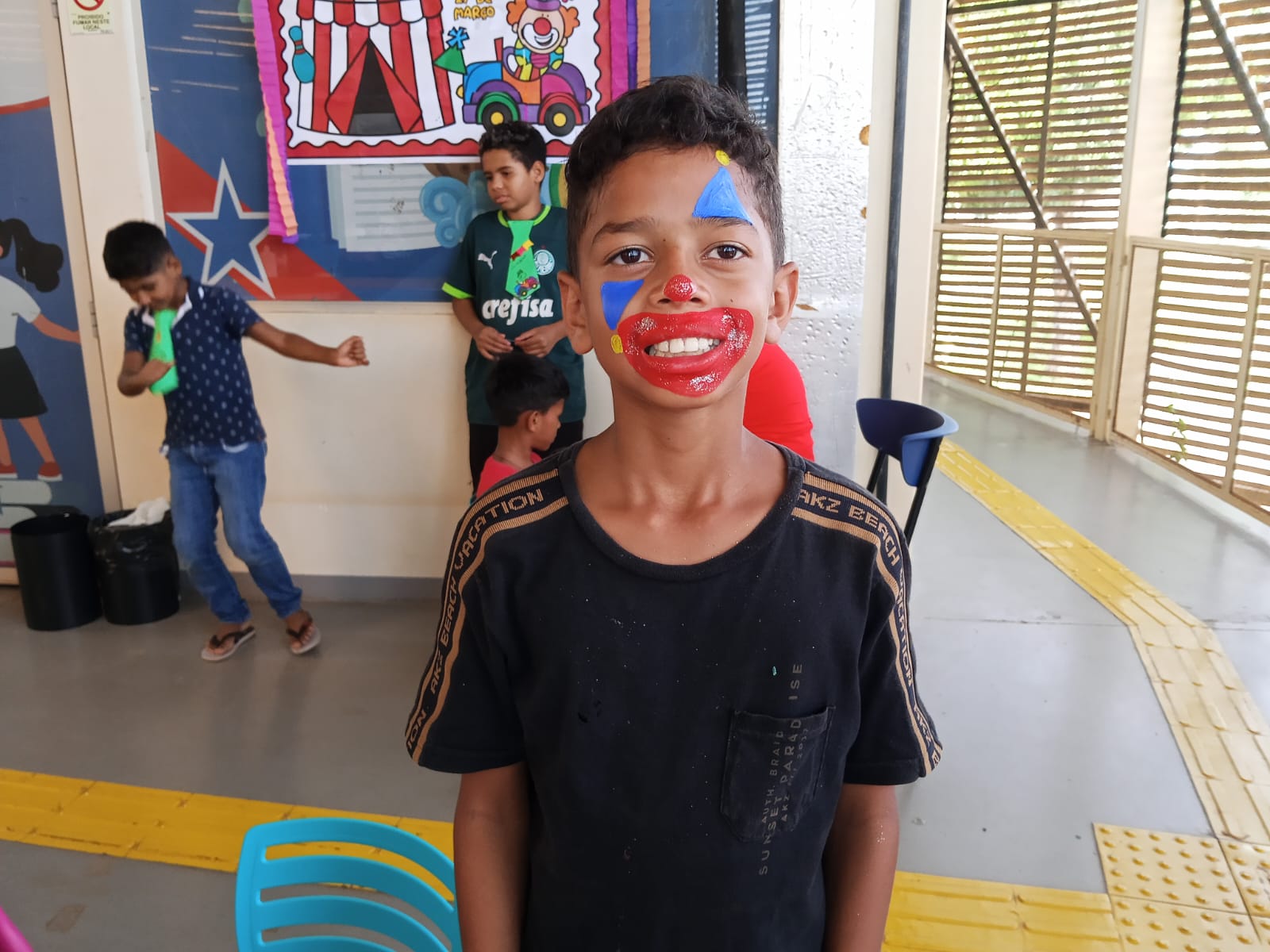 Durante a programação, as crianças participaram da confecção de nariz de palhaço e gravata divertida, estimulando a criatividade e o envolvimento com o universo circense. Em seguida, houve um momento de pintura facial, no qual os participantes se transformaram em alegres palhacinhos, tornando a atividade ainda mais interativa e envolvente.