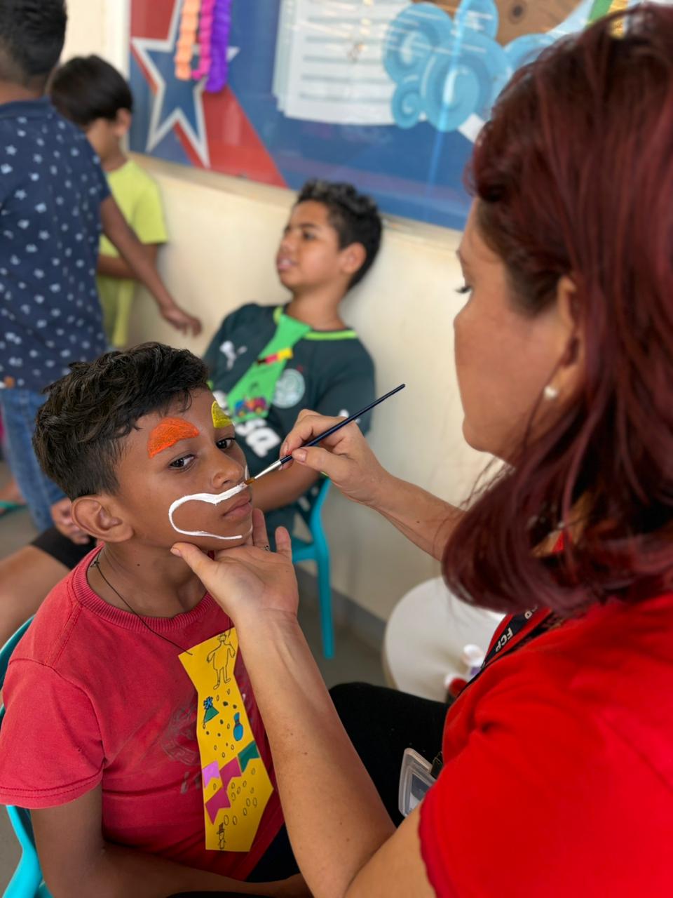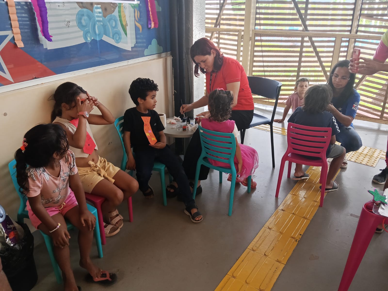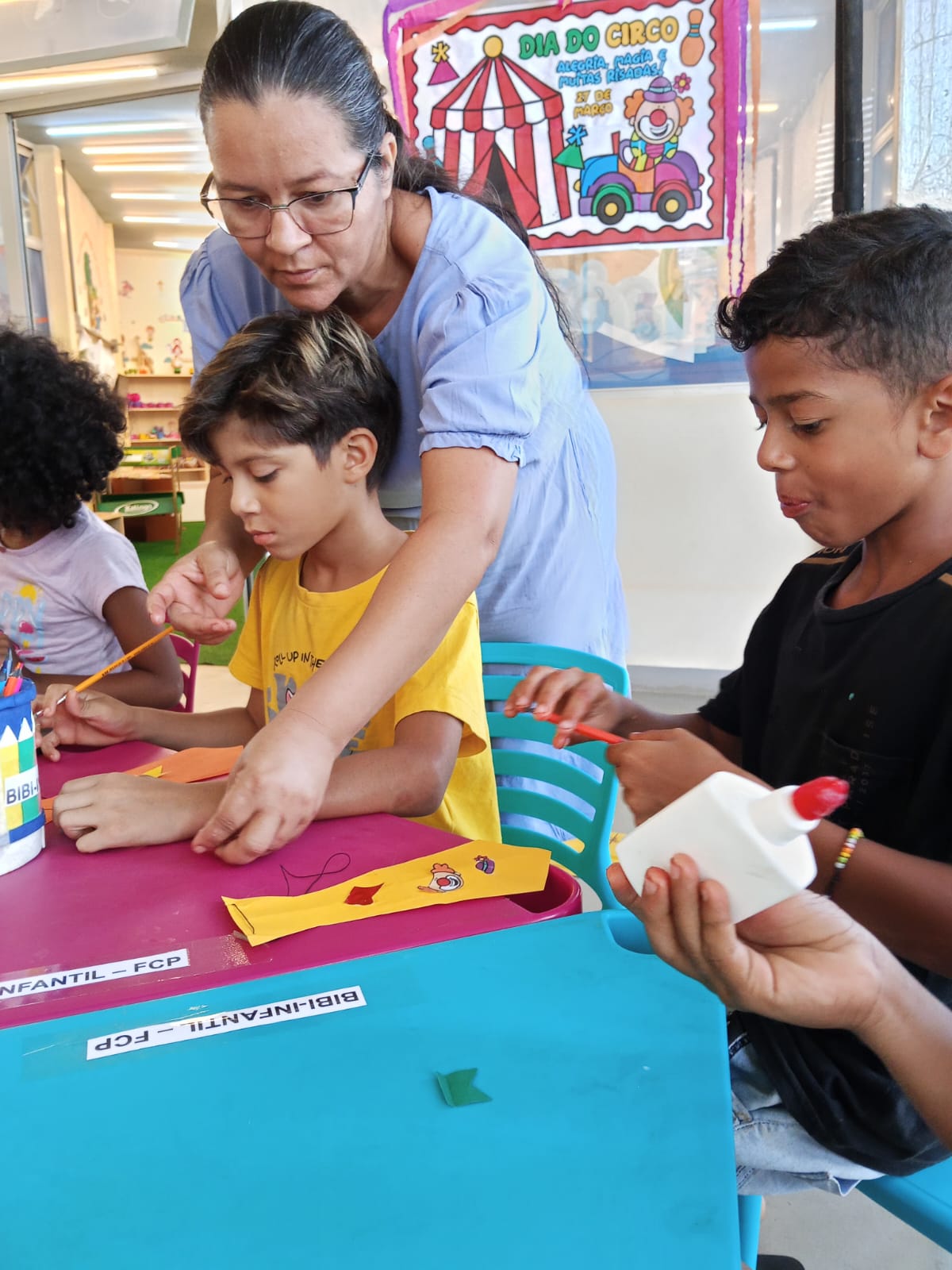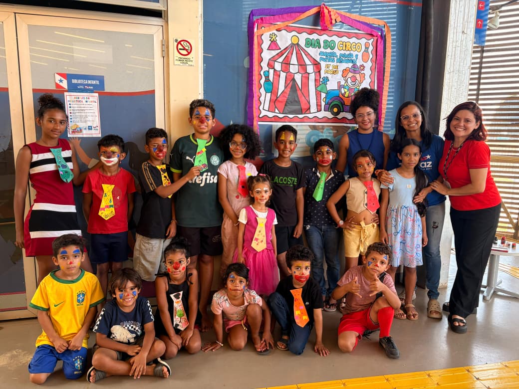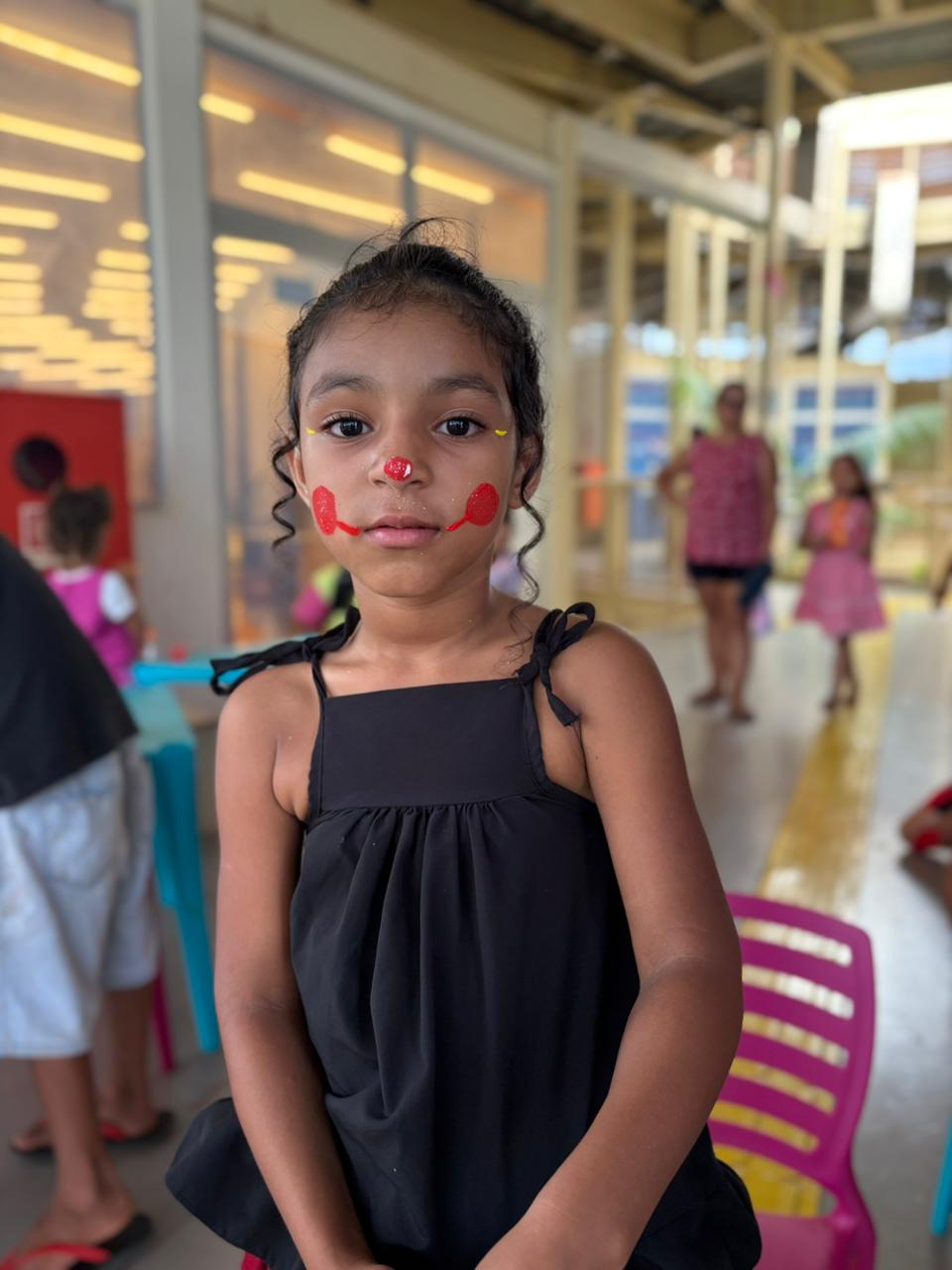Durante a programação, as crianças participaram da confecção de nariz de palhaço e gravata divertida, estimulando a criatividade e o envolvimento com o universo circense. Em seguida, houve um momento de pintura facial, no qual os participantes se transformaram em alegres palhacinhos, tornando a atividade ainda mais interativa e envolvente.