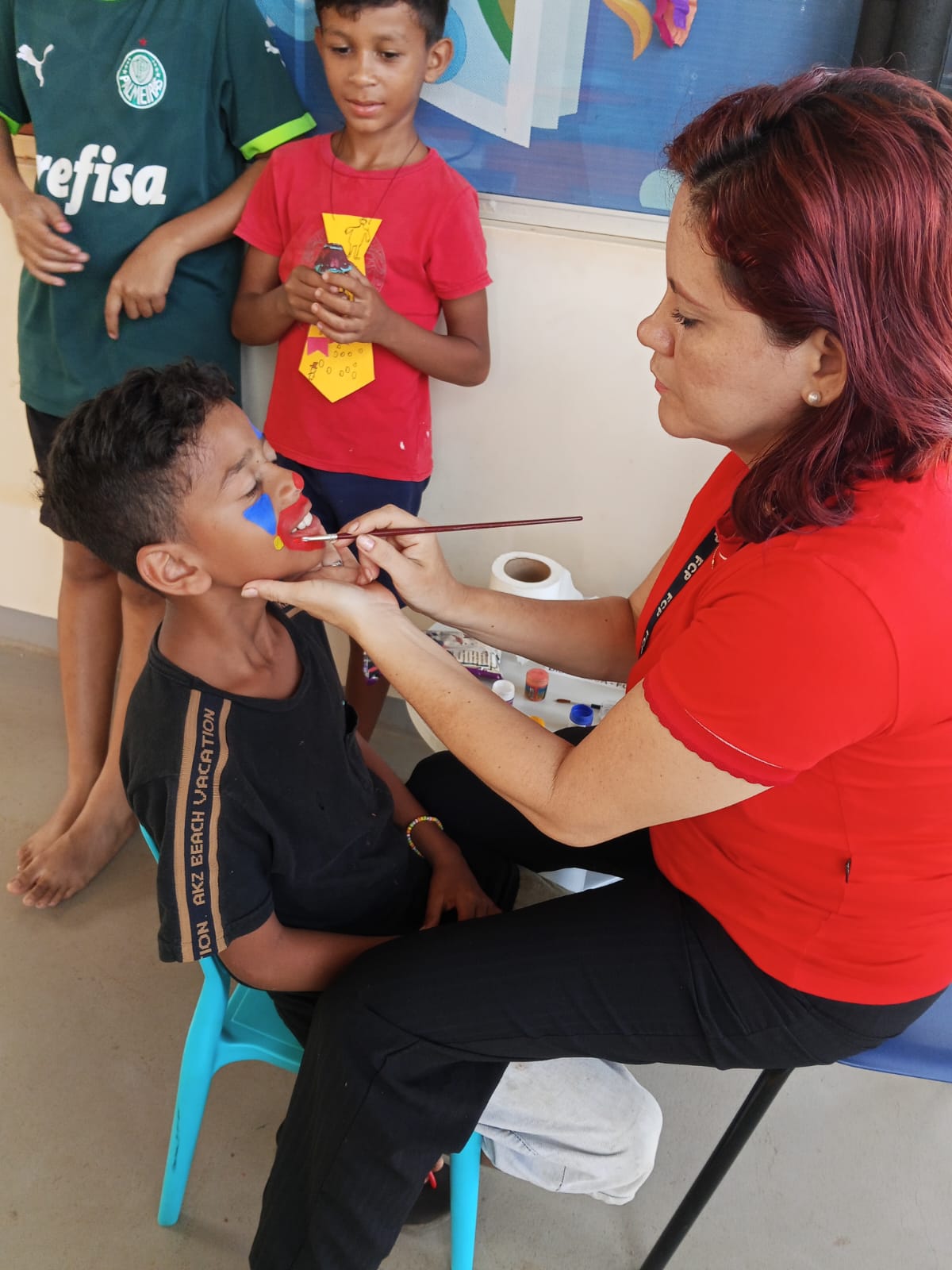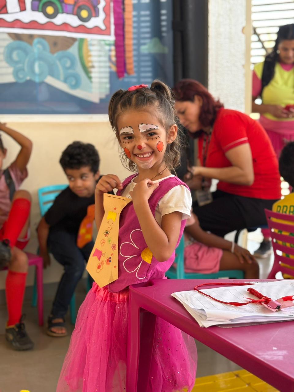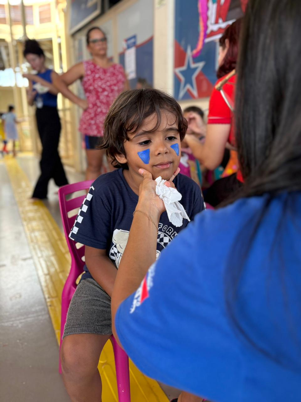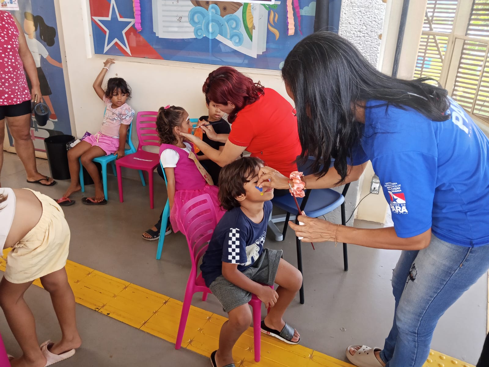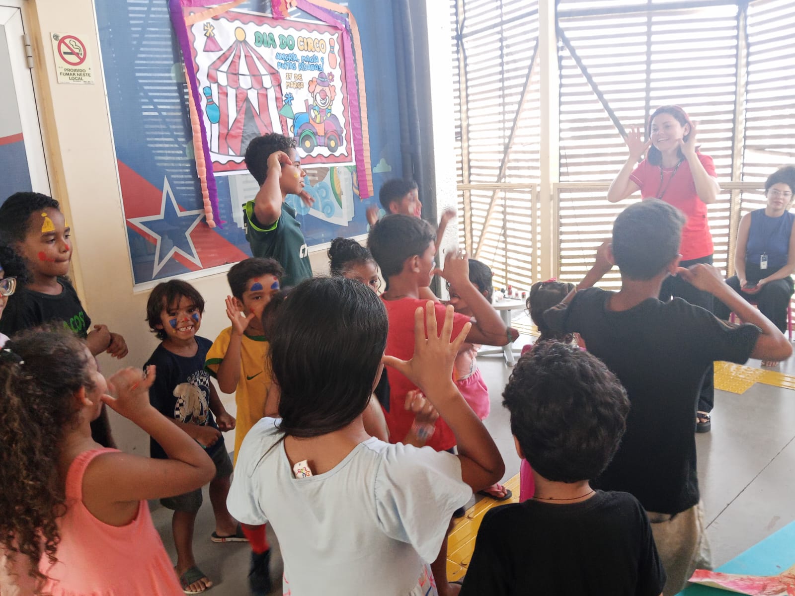 Durante a programação, as crianças participaram da confecção de nariz de palhaço e gravata divertida, estimulando a criatividade e o envolvimento com o universo circense. Em seguida, houve um momento de pintura facial, no qual os participantes se transformaram em alegres palhacinhos, tornando a atividade ainda mais interativa e envolvente.