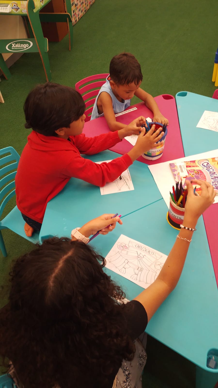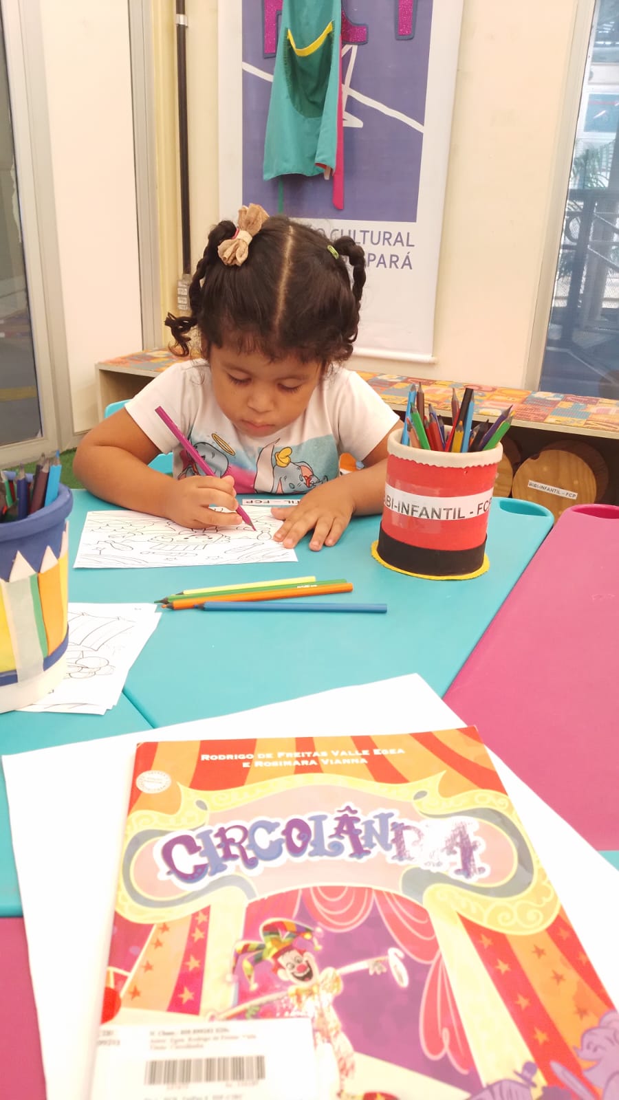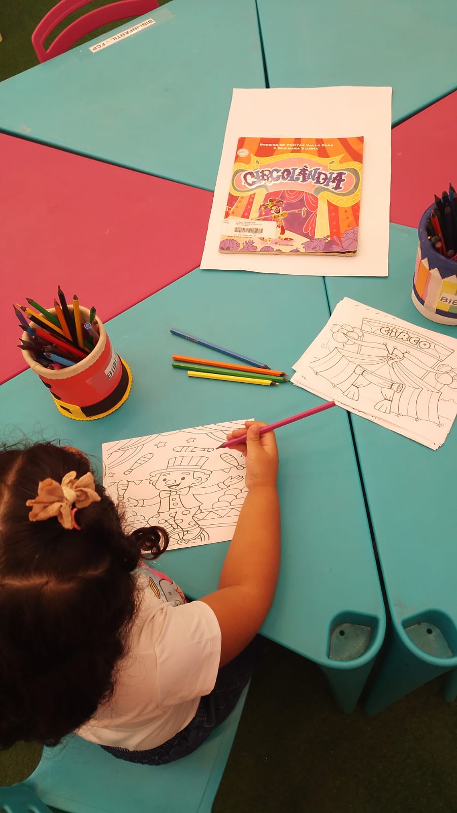 A programação teve início com uma contação de história temática, despertando a imaginação dos participantes e apresentando elementos do universo circense de forma lúdica. Em seguida, foi realizada uma atividade de desenho dirigido, acompanhada de momentos de colorir ilustrações relacionadas ao circo, incentivando a expressão artística e a coordenação motora das crianças.