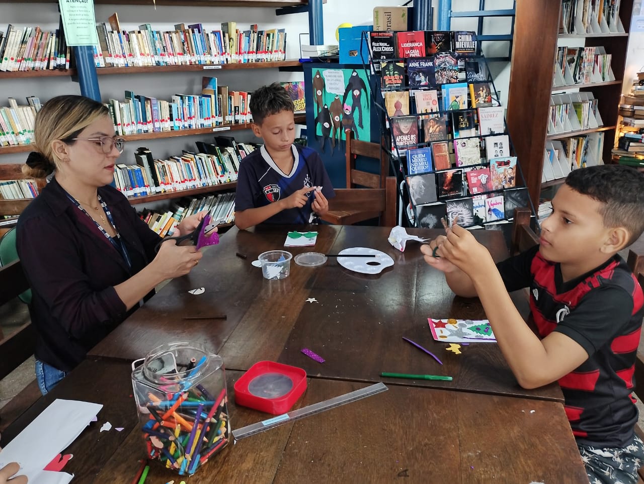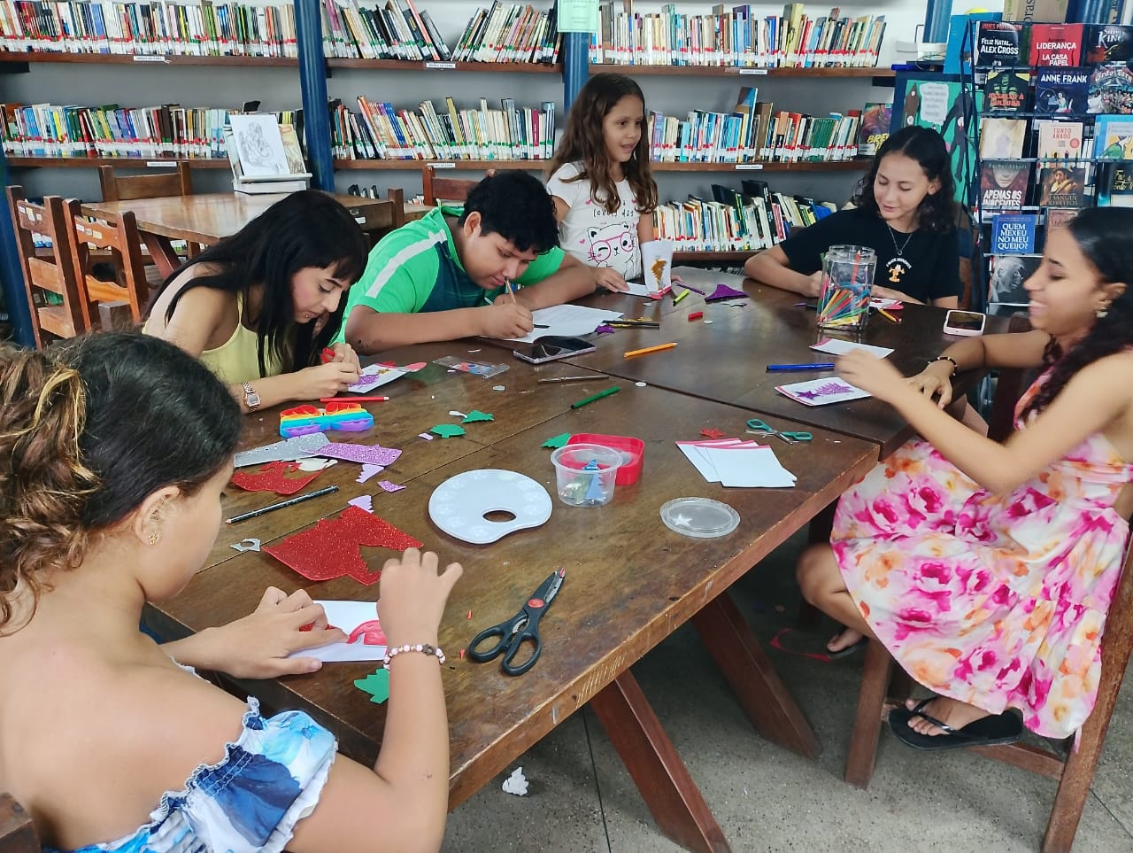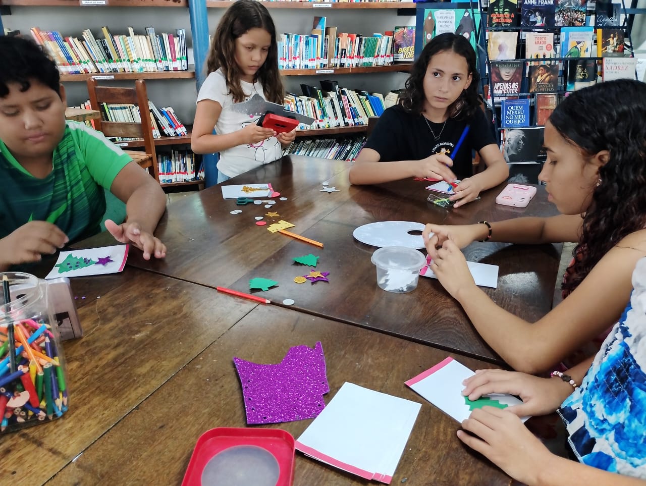 No dia 11 de dezembro, em celebração às festividades de Natal, a Biblioteca Carmen Sousa realizou a Oficina Infantil: Cartões de Natal.