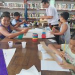 A atividade buscou proporcionar um ambiente lúdico e colaborativo entre os pequenos, utilizando materiais recicláveis, papel cartão, glitter e diversas tintas, tornando o espaço da biblioteca colorido, alegre e festivo nesse período.