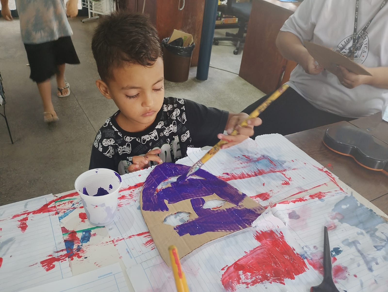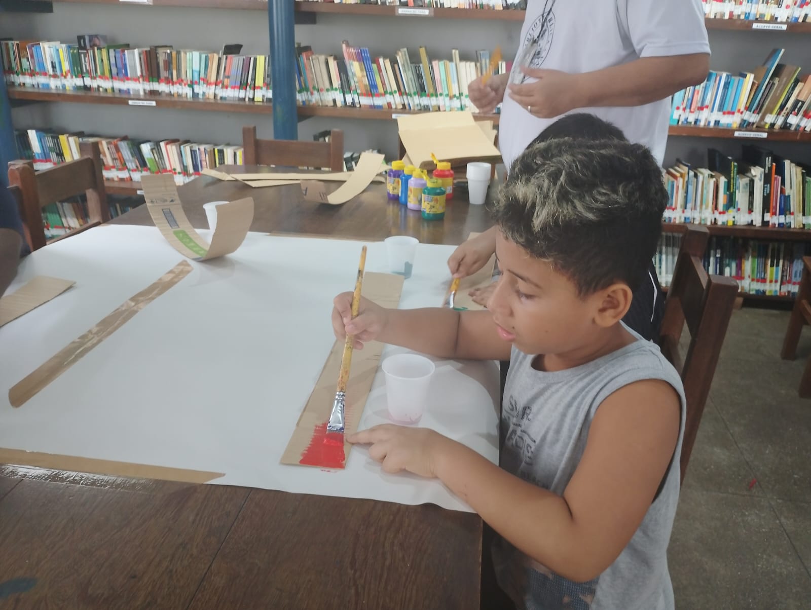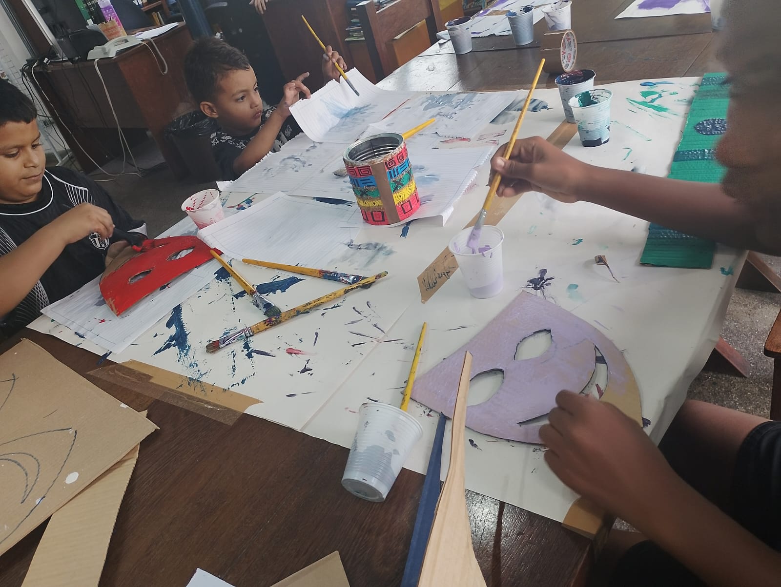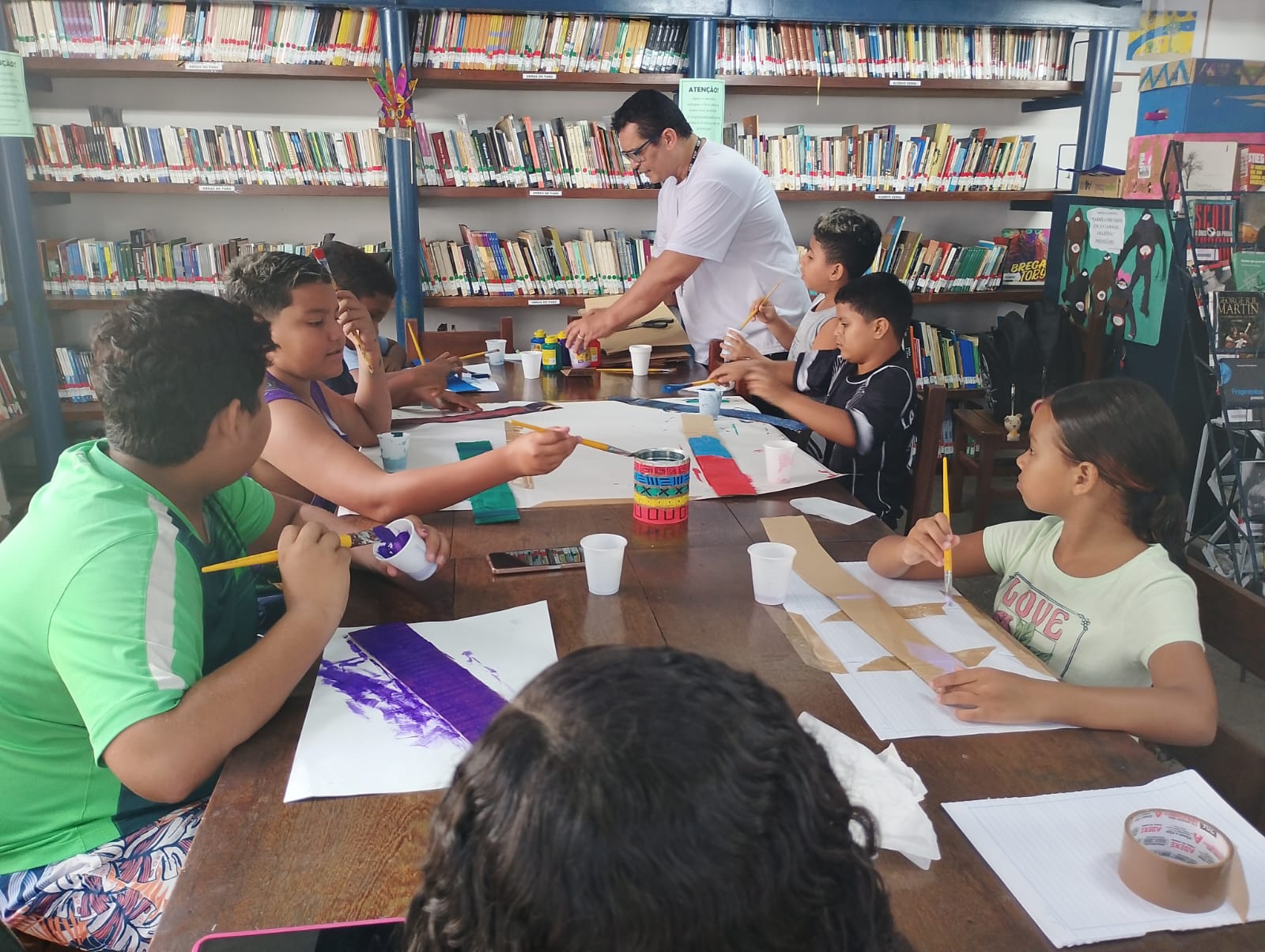 A atividade buscou proporcionar um ambiente lúdico e colaborativo entre os pequenos, utilizando materiais recicláveis, papel cartão, glitter e diversas tintas, tornando o espaço da biblioteca colorido, alegre e festivo nesse período.