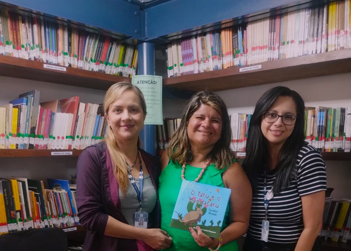Ao final, a autora realizou a doação do livro para compor o acervo da biblioteca e agradeceu a oportunidade de disseminar e popularizar a literatura infantil do nordeste.