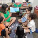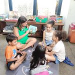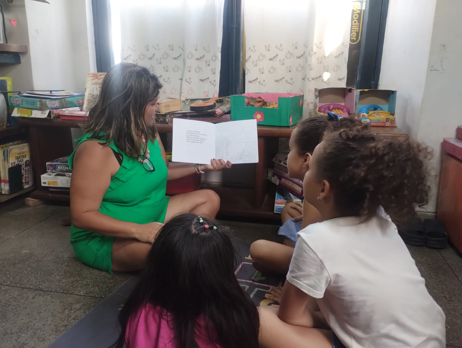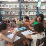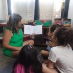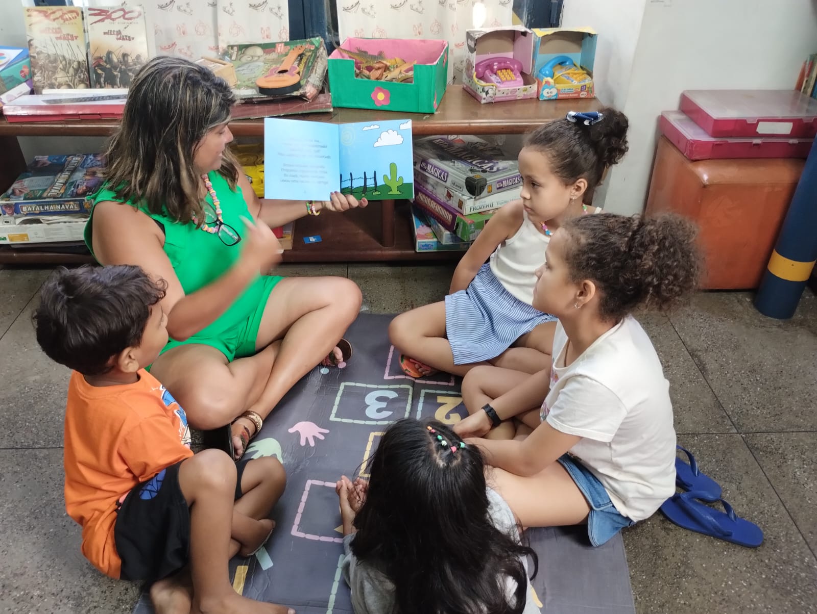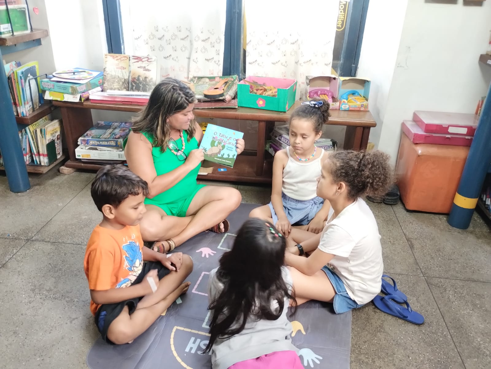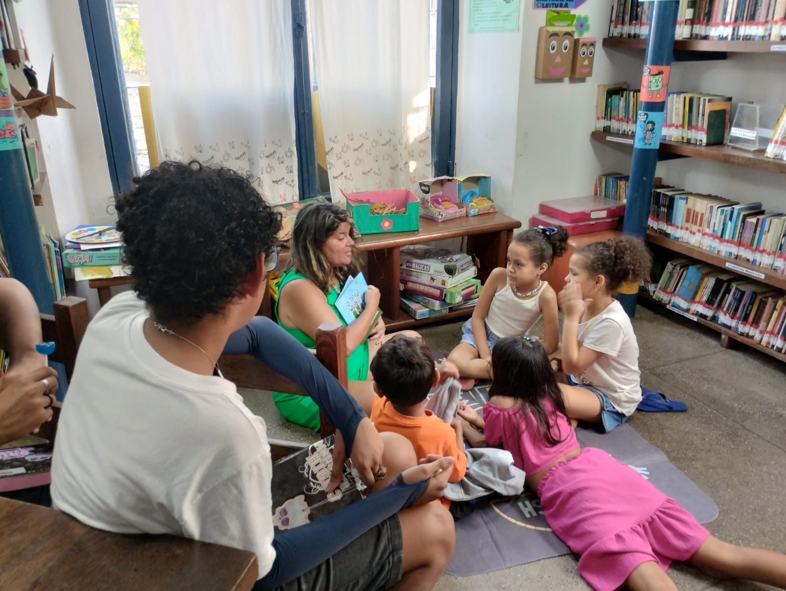 A visitação da escritora baiana trouxe momentos maravilhosos, como a contação de história “O tatu e o Mandacaru” de sua autoria, com as crianças presentes naquela tarde na biblioteca. Em seguida, ela realizou várias composições poéticas com os nomes das crianças que se divertiram com essa dinâmica, como também atividades de pintura sobre o narrativa da história.