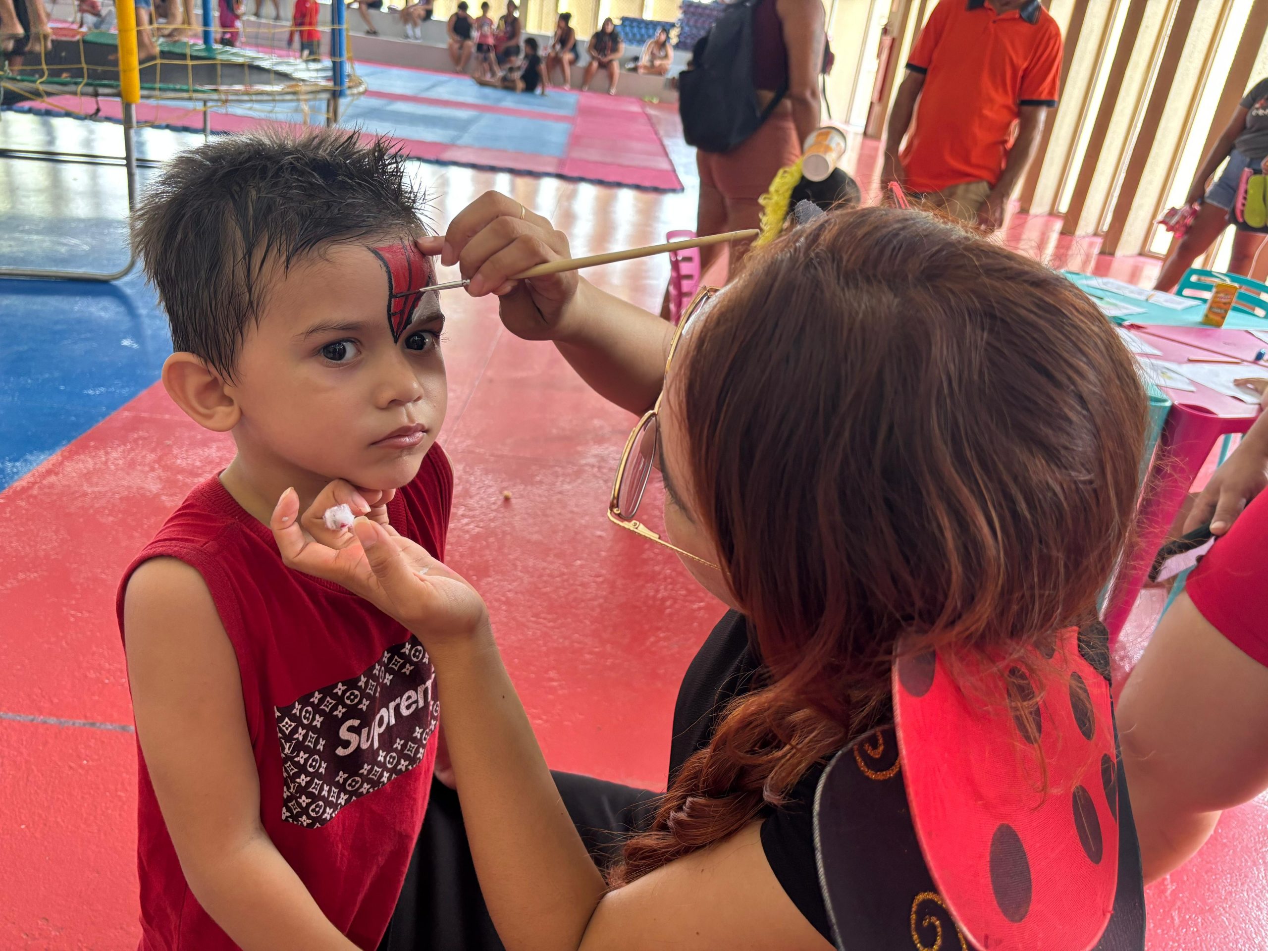 As atividades aconteceram em dois espaços da Usina: na biblioteca, onde ocorreram momentos de contação de histórias, oficinas criativas e jogos de RPG infantil; e no ginásio, que foi transformado em um grande espaço para brincadeiras, pintura facial e outras atividades lúdicas que estimularam o movimento, a interação e o espírito de equipe entre os pequenos.