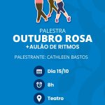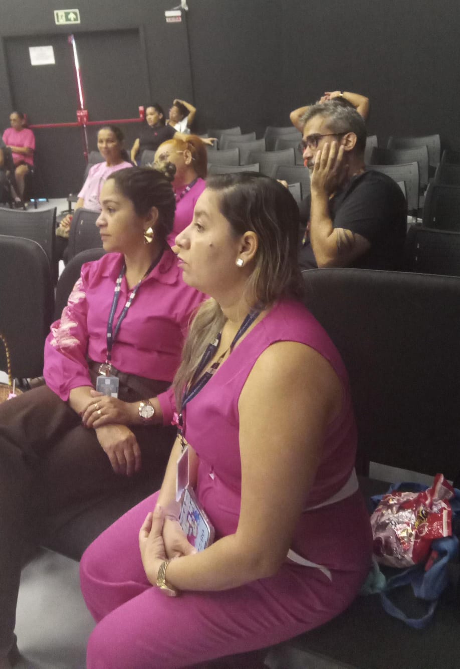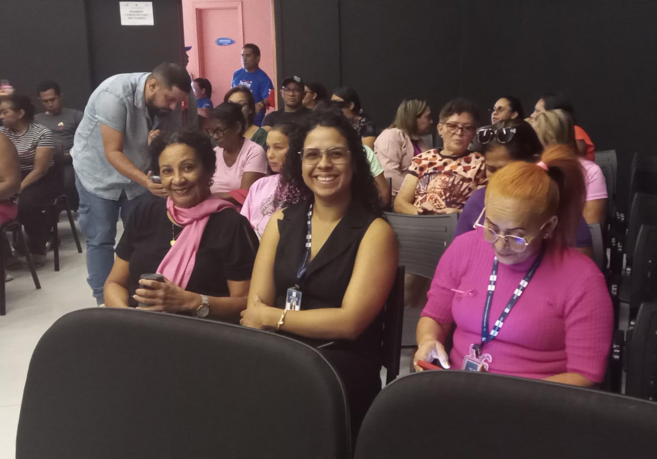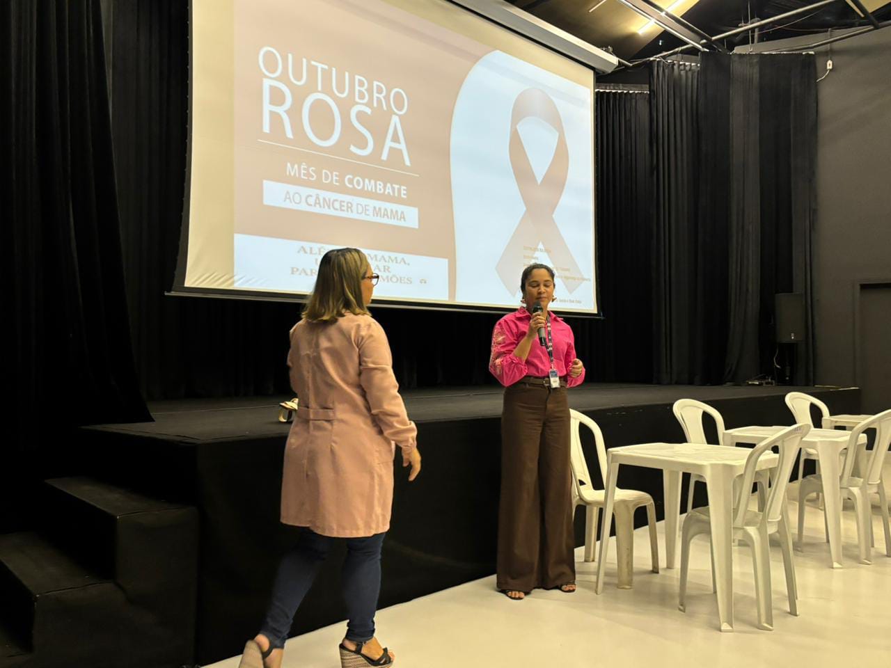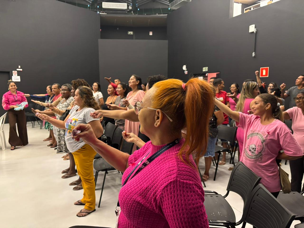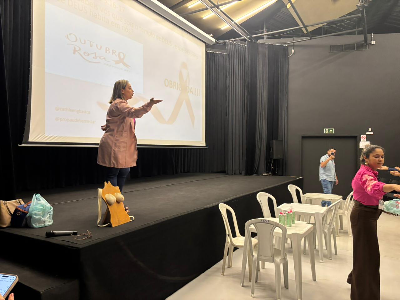 Evento em alusão ao Outubro Rosa contou com a participação da palestrante Cathllen Bastos e ocorreu no teatro da Usina da Paz