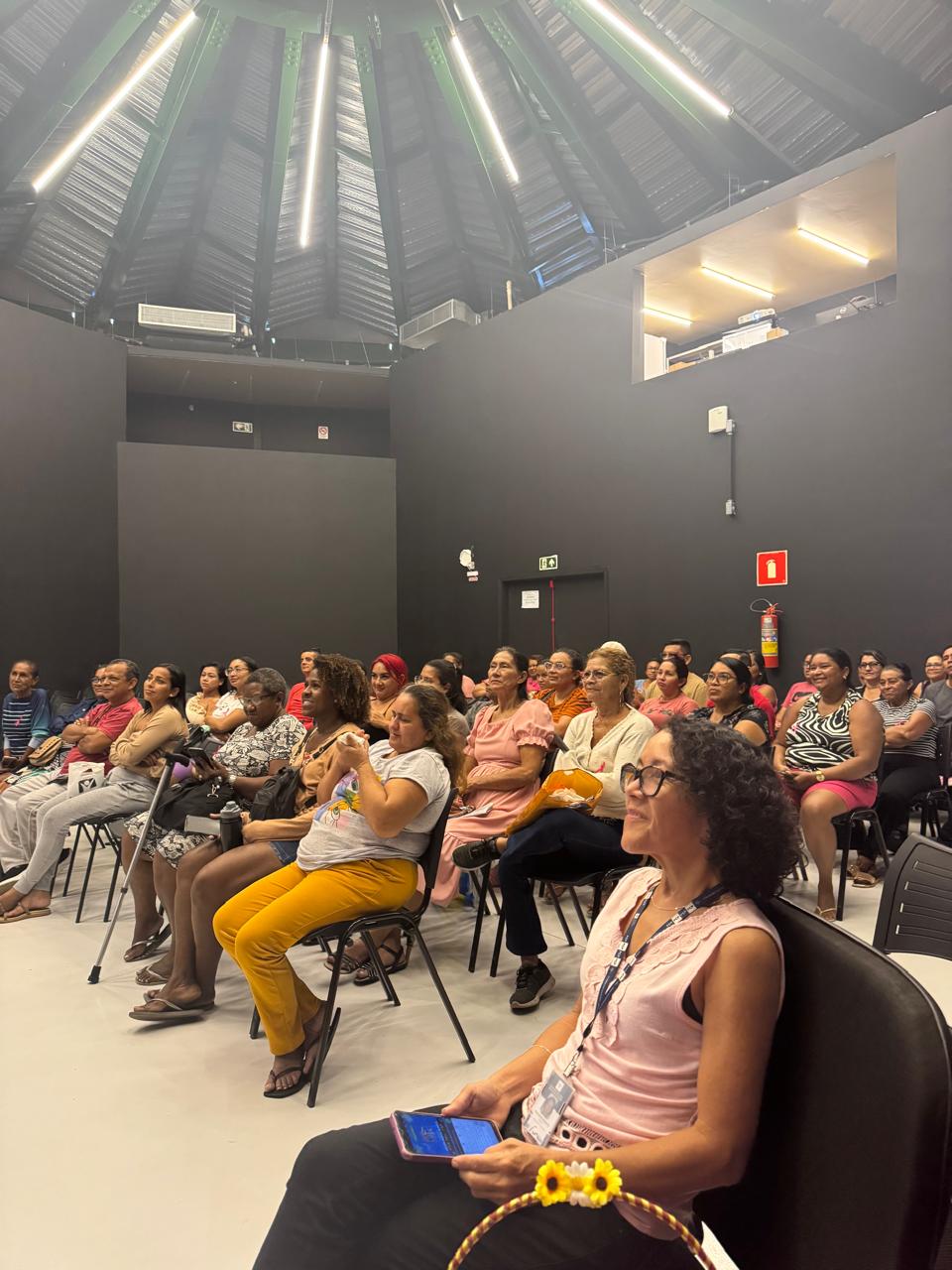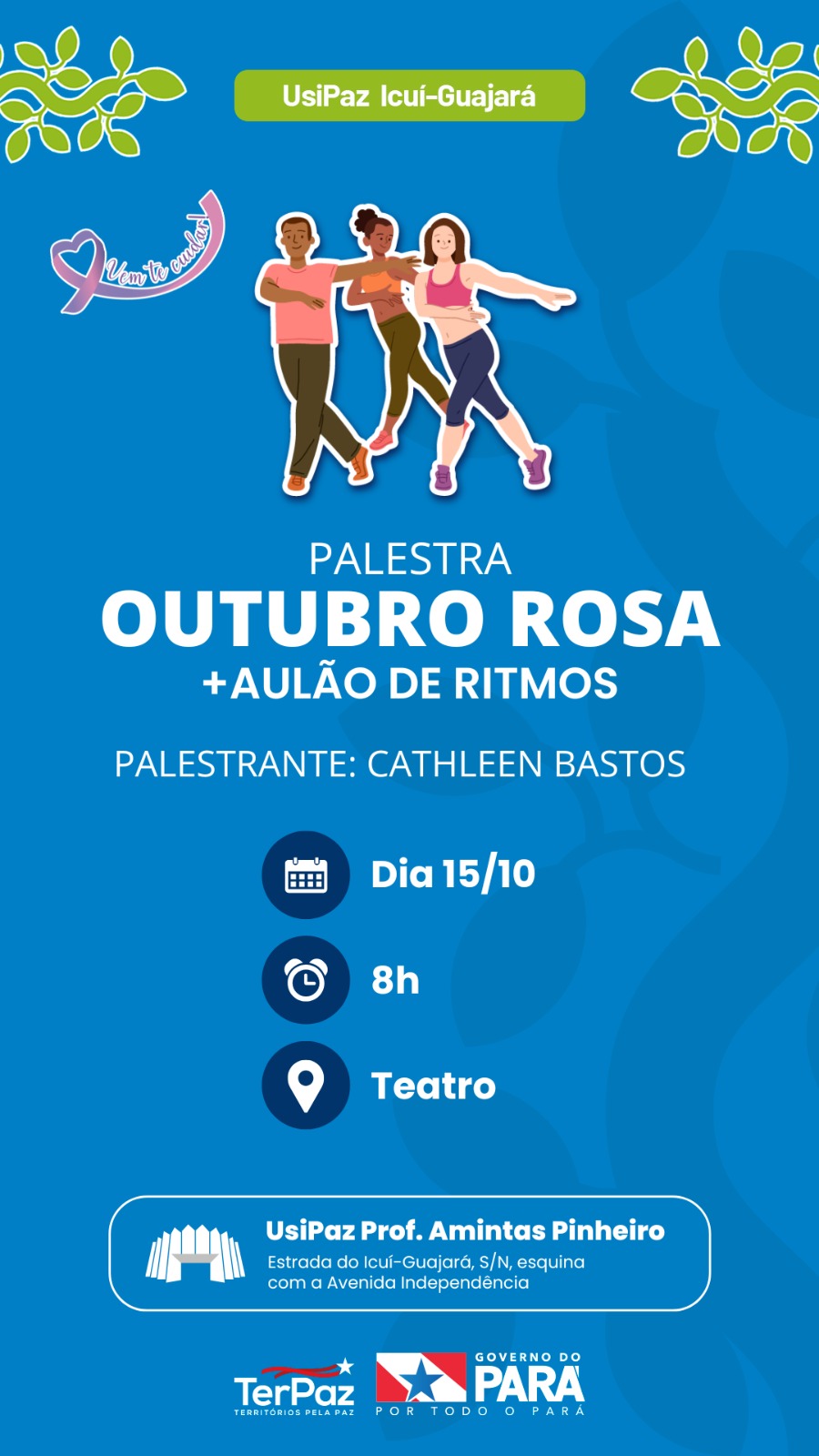Na manhã da última quarta-feira, 15 de outubro de 2025, a partir das 8h, a Biblioteca da Usina da Paz Prof. Amintas Pinheiro promoveu uma programação especial em apoio à campanha Outubro Rosa, reunindo informação, cuidado com a saúde e movimento em um único evento. A atividade aconteceu no teatro da Usina da Paz e teve como destaque a palestra ministrada por Cathllen Bastos, especialista convidada para falar sobre a prevenção e o enfrentamento do câncer de mama.