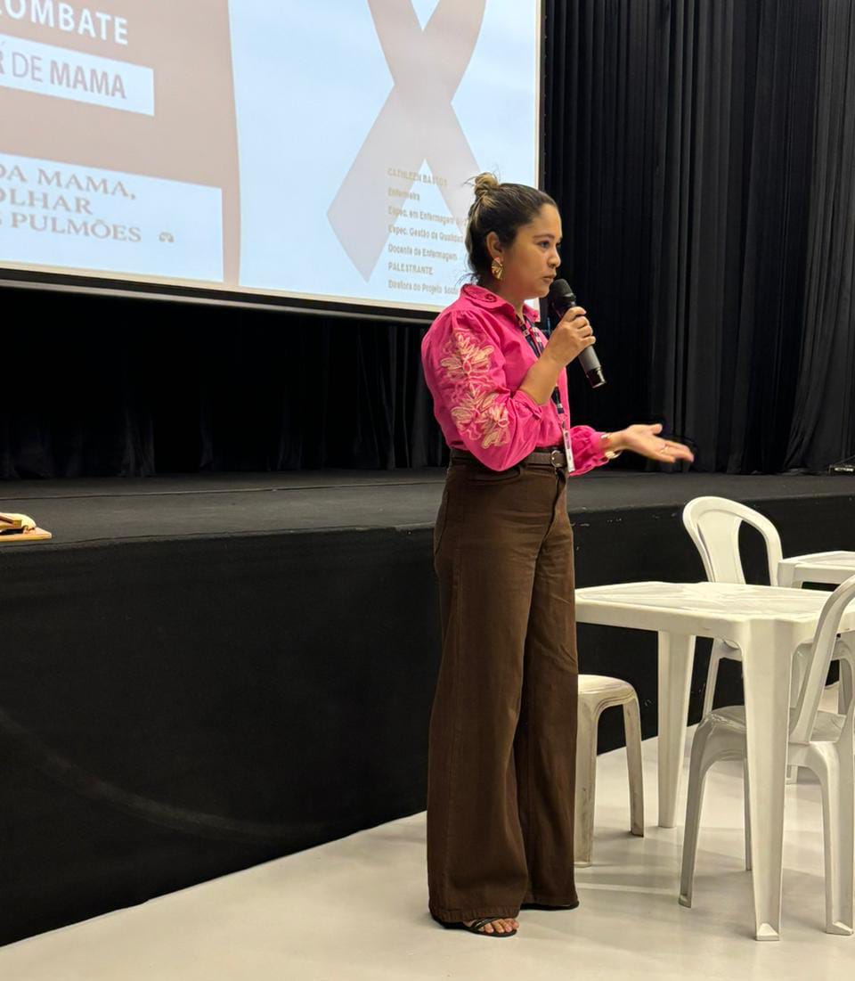 Com uma abordagem acolhedora e informativa, a palestrante trouxe dados atualizados, esclareceu dúvidas do público e reforçou a importância do diagnóstico precoce, do autocuidado e do acesso à saúde. O momento foi marcado por troca de experiências e grande participação dos presentes, que lotaram o auditório em busca de conhecimento e apoio mútuo.