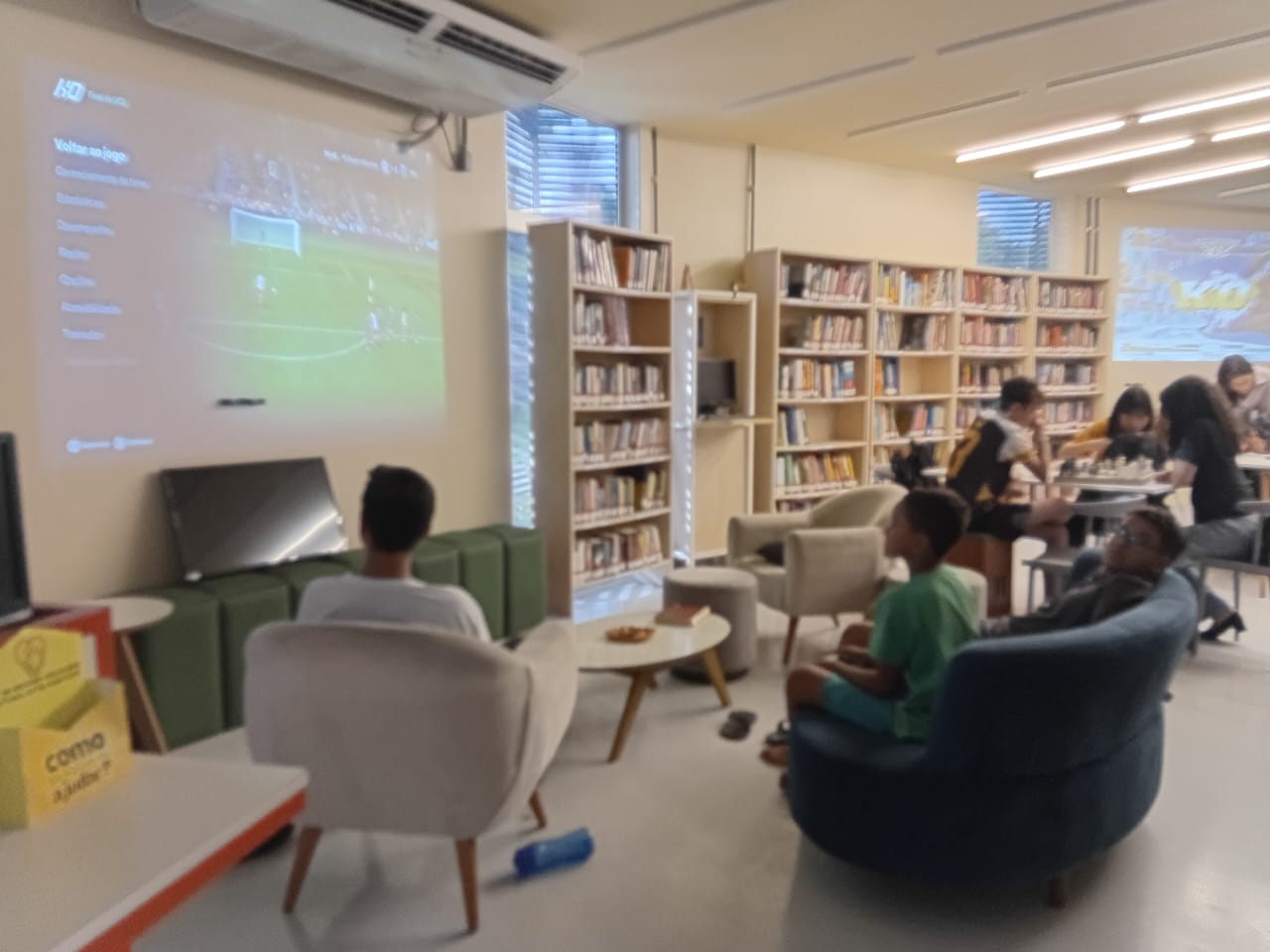 No espaço, é possível encontrar mesas dedicadas a jogos como xadrez, dama e dominó, promovendo o raciocínio lógico e a interação social. Para quem prefere tecnologia, há estações com PlayStation 5, retrogames e muitos outros consoles, proporcionando experiências nostálgicas e atuais.