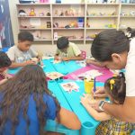 Durante a oficina, os participantes desenvolveram atividades manuais e artísticas ✂️, enquanto as dinâmicas recreativas garantiram momentos de descontração e interação entre o público presente 😄🎈.