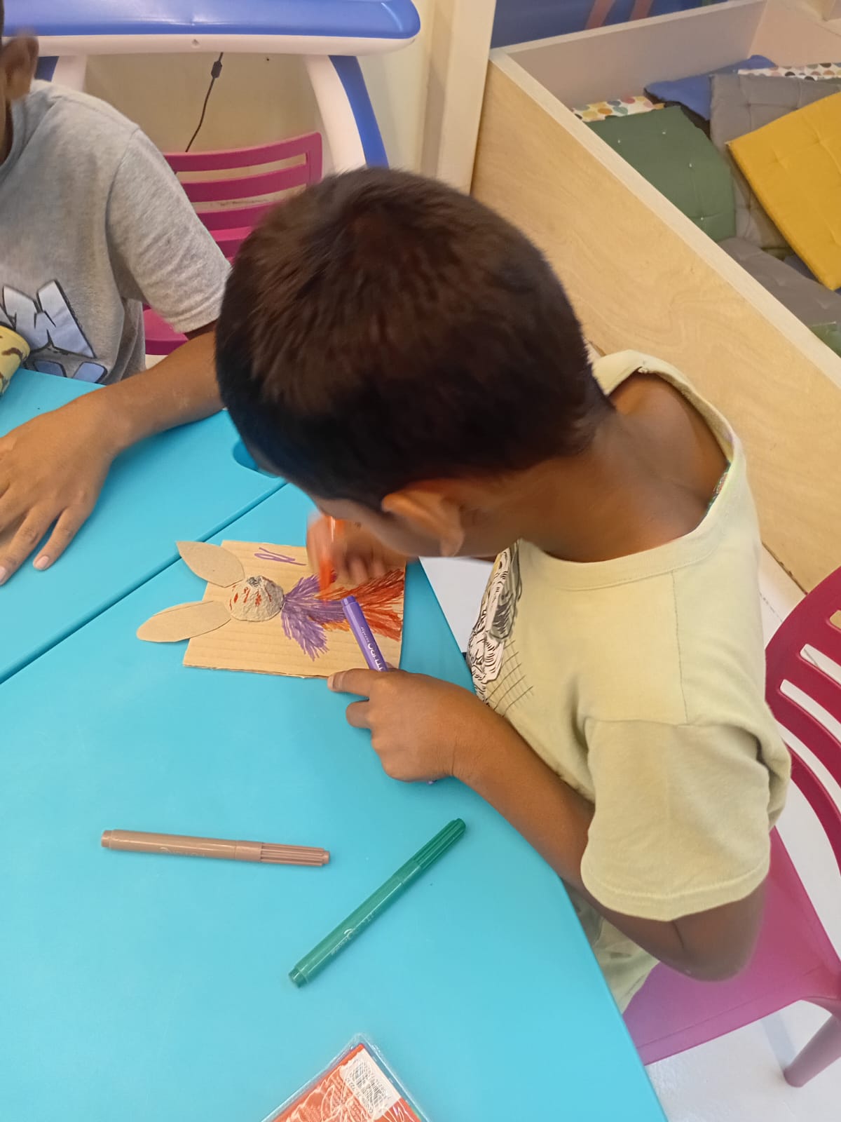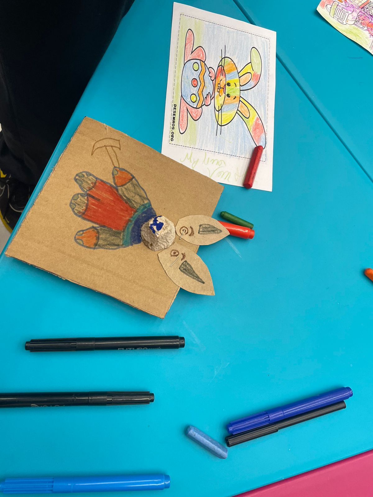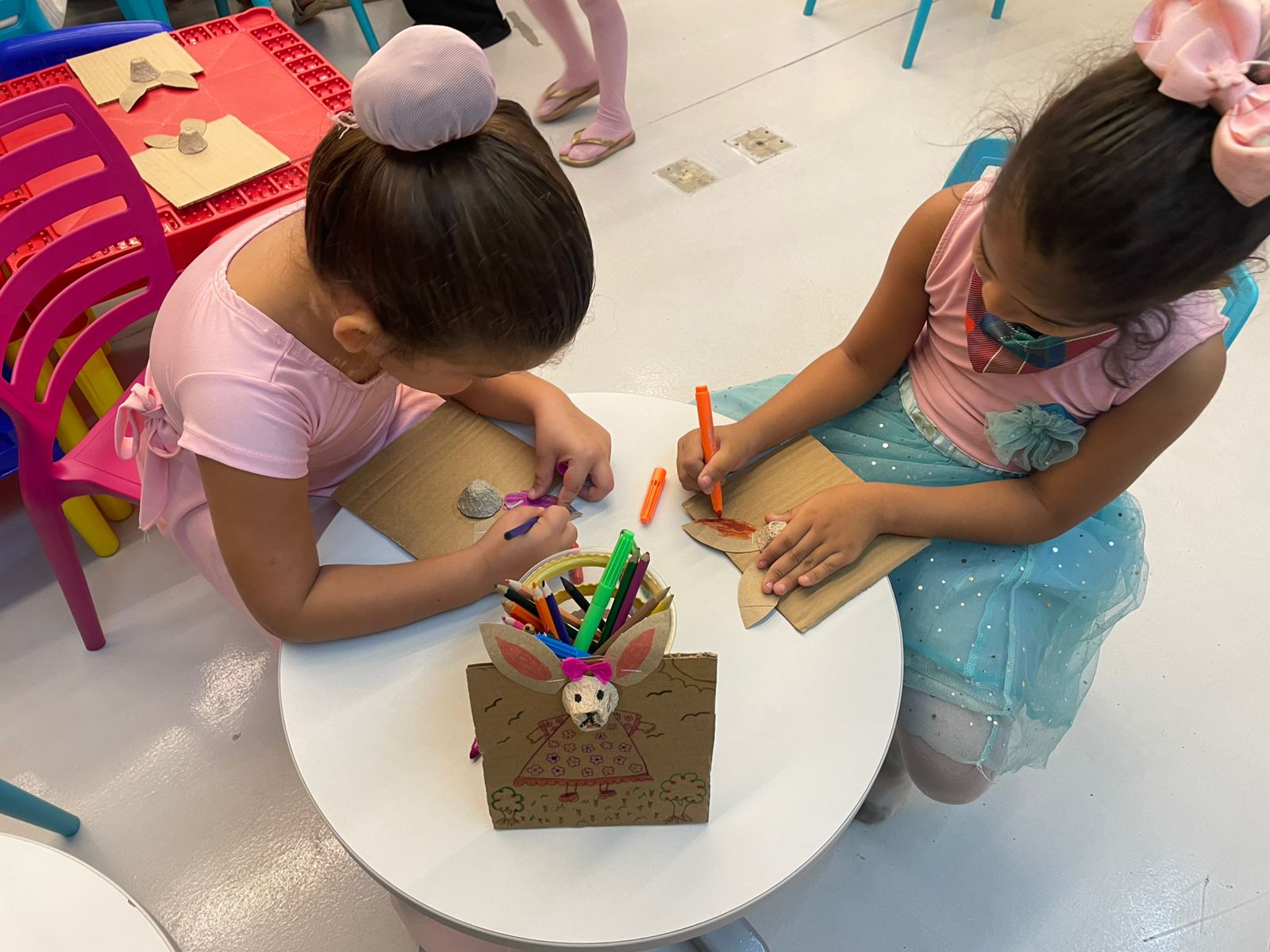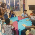 Durante a oficina, os participantes desenvolveram atividades manuais e artísticas ✂️, enquanto as dinâmicas recreativas garantiram momentos de descontração e interação entre o público presente 😄🎈.