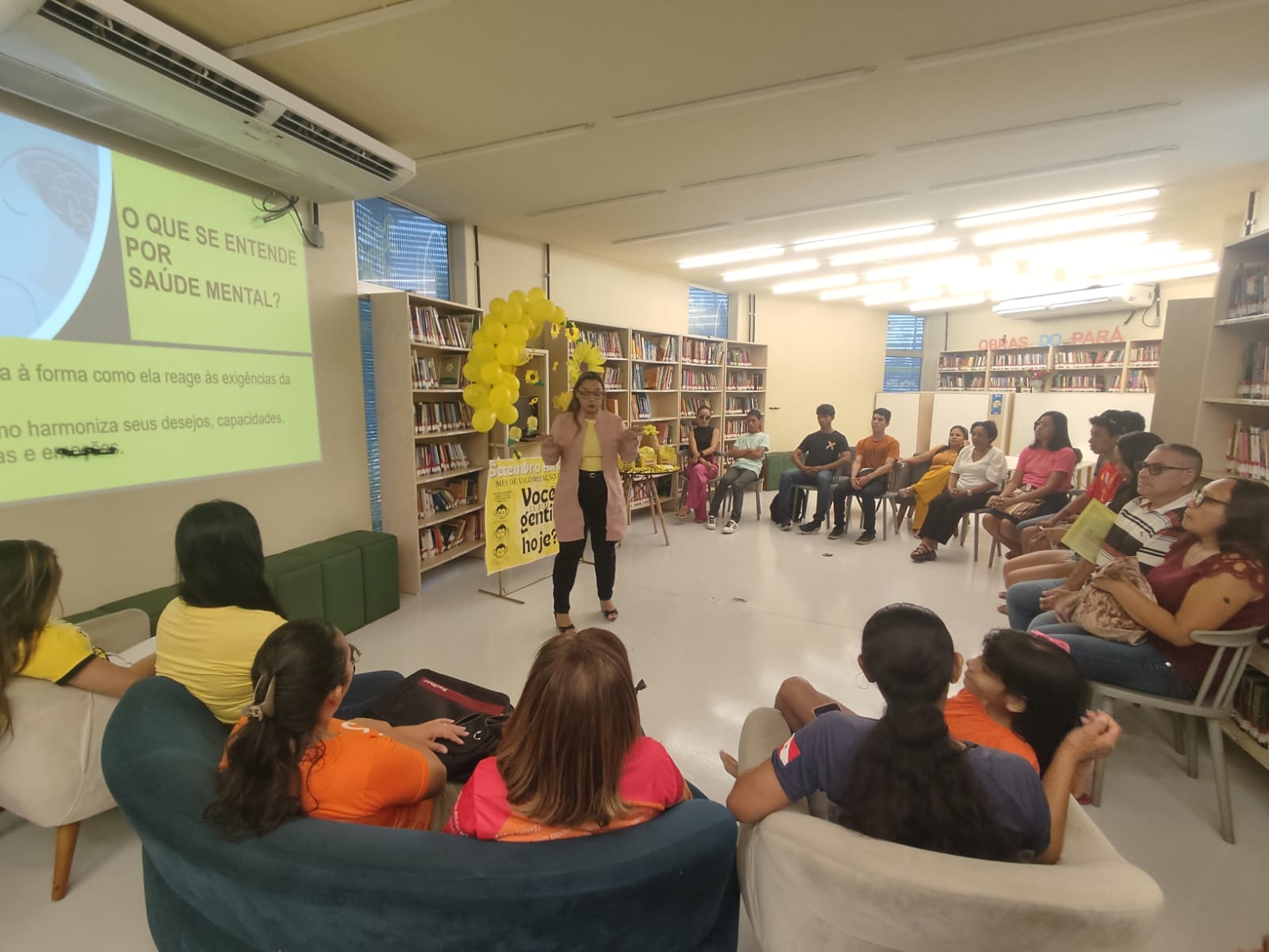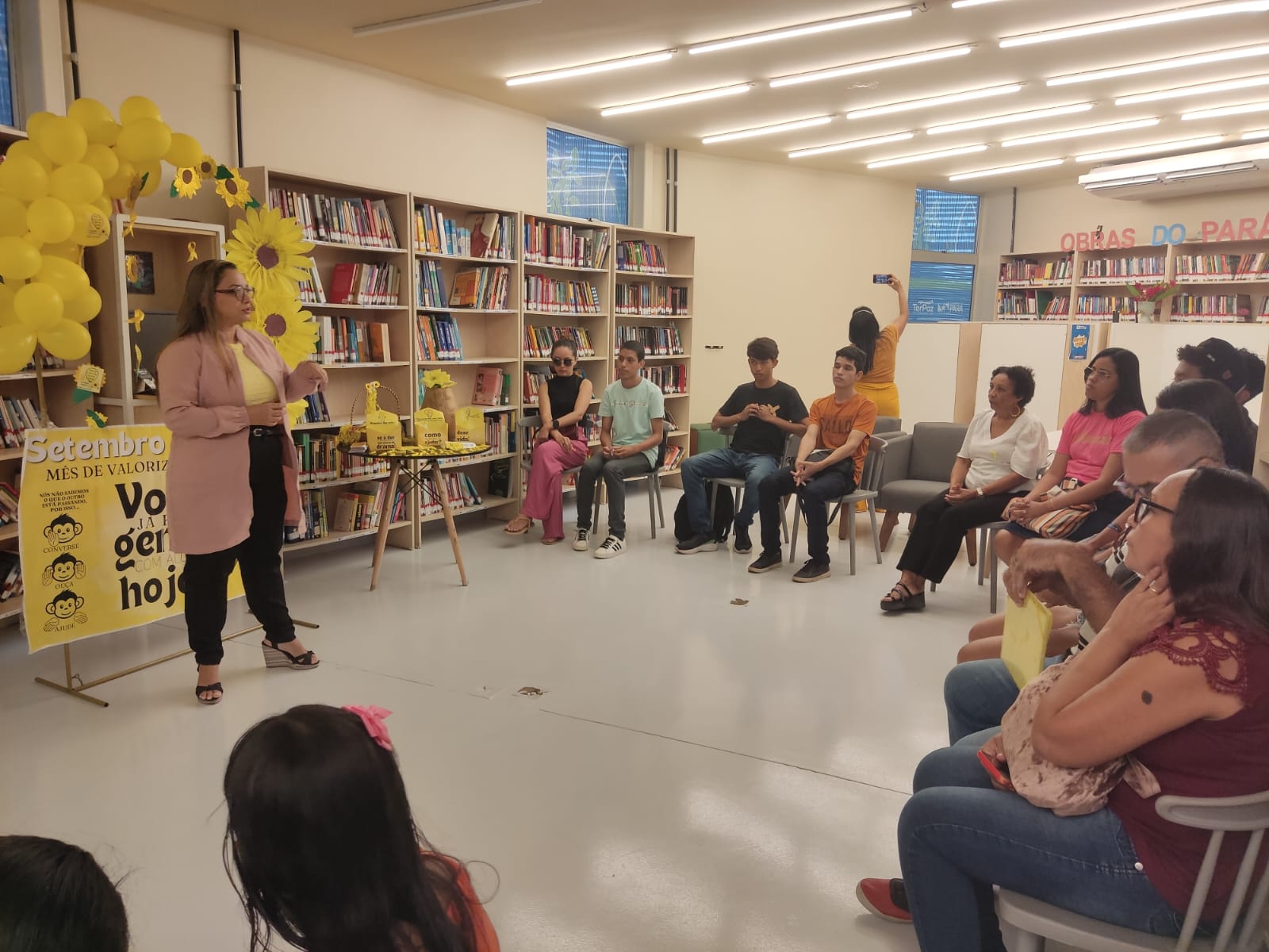 Dando sequência às ações da campanha Setembro Amarelo, que busca conscientizar sobre a valorização da vida e a prevenção ao suicídio, foi realizada, no dia 18 de setembro, uma manhã de atividades abertas ao público, das 9h às 12h, na Biblioteca da Usina da Paz Prof. Amintas Pinheiro. O encontro reuniu informação, arte e momentos de acolhimento, reforçando a mensagem de que falar é sempre a melhor solução.