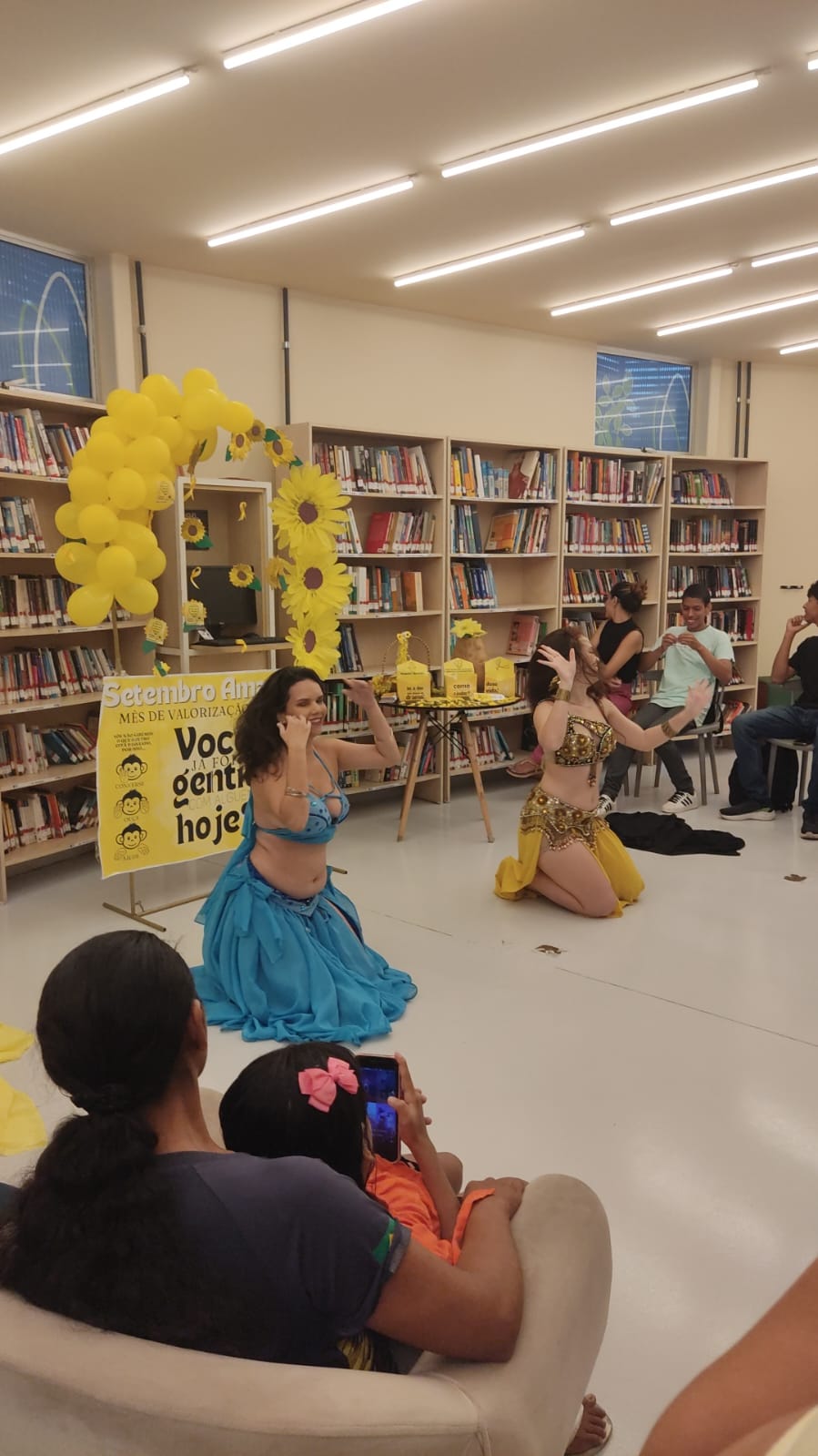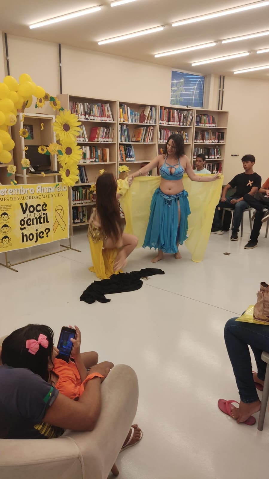 A programação contou com a participação especial do NEFERTITI Studio de Dança💃, que encantou os presentes com uma apresentação de dança do ventre, trazendo leveza e sensibilidade ao debate. Em seguida, a enfermeira Cathleen Bastos conduziu uma palestra esclarecedora, destacando a importância do cuidado com a saúde mental, da escuta atenta e da busca por apoio profissional em situações de sofrimento emocional.