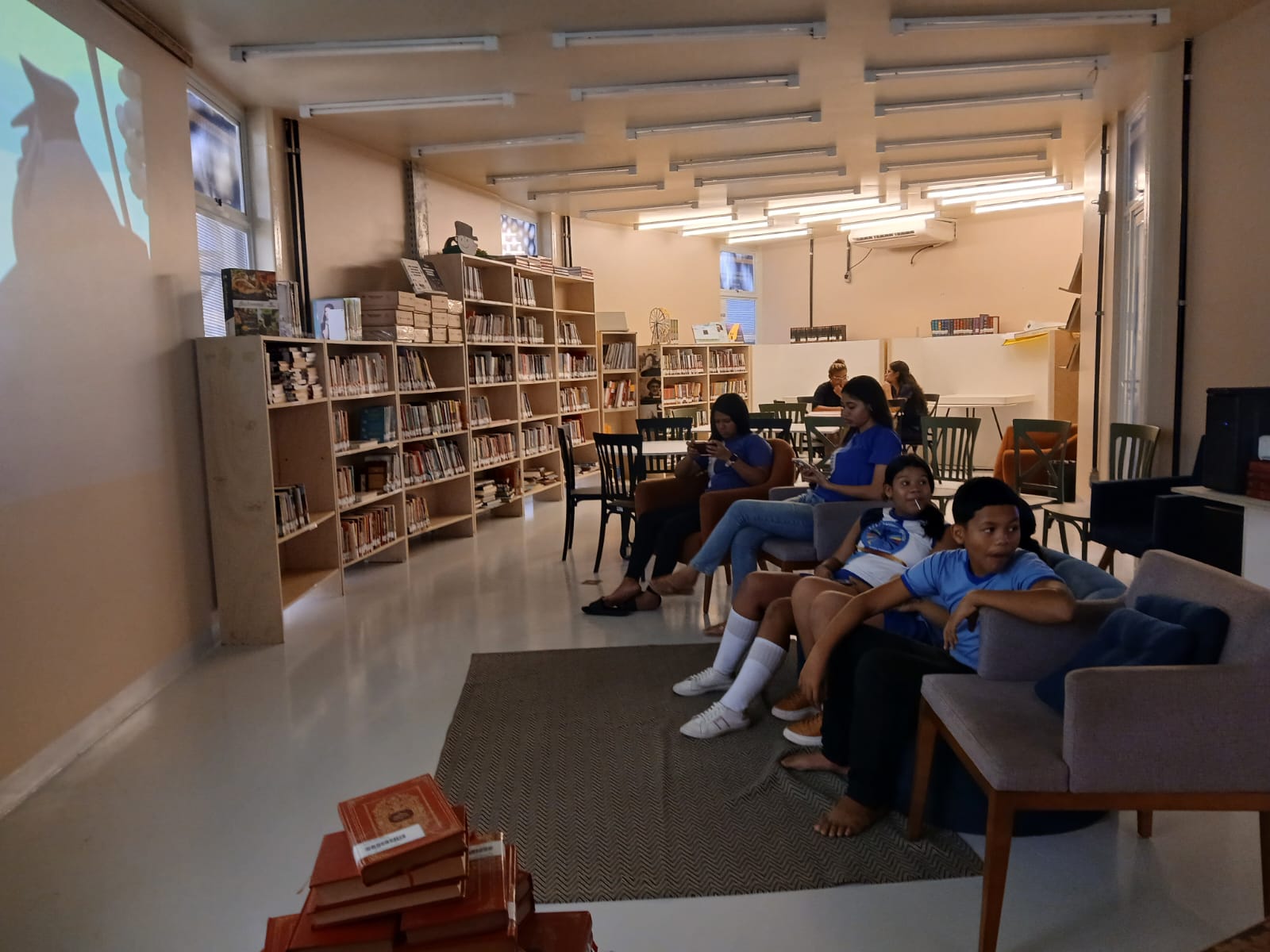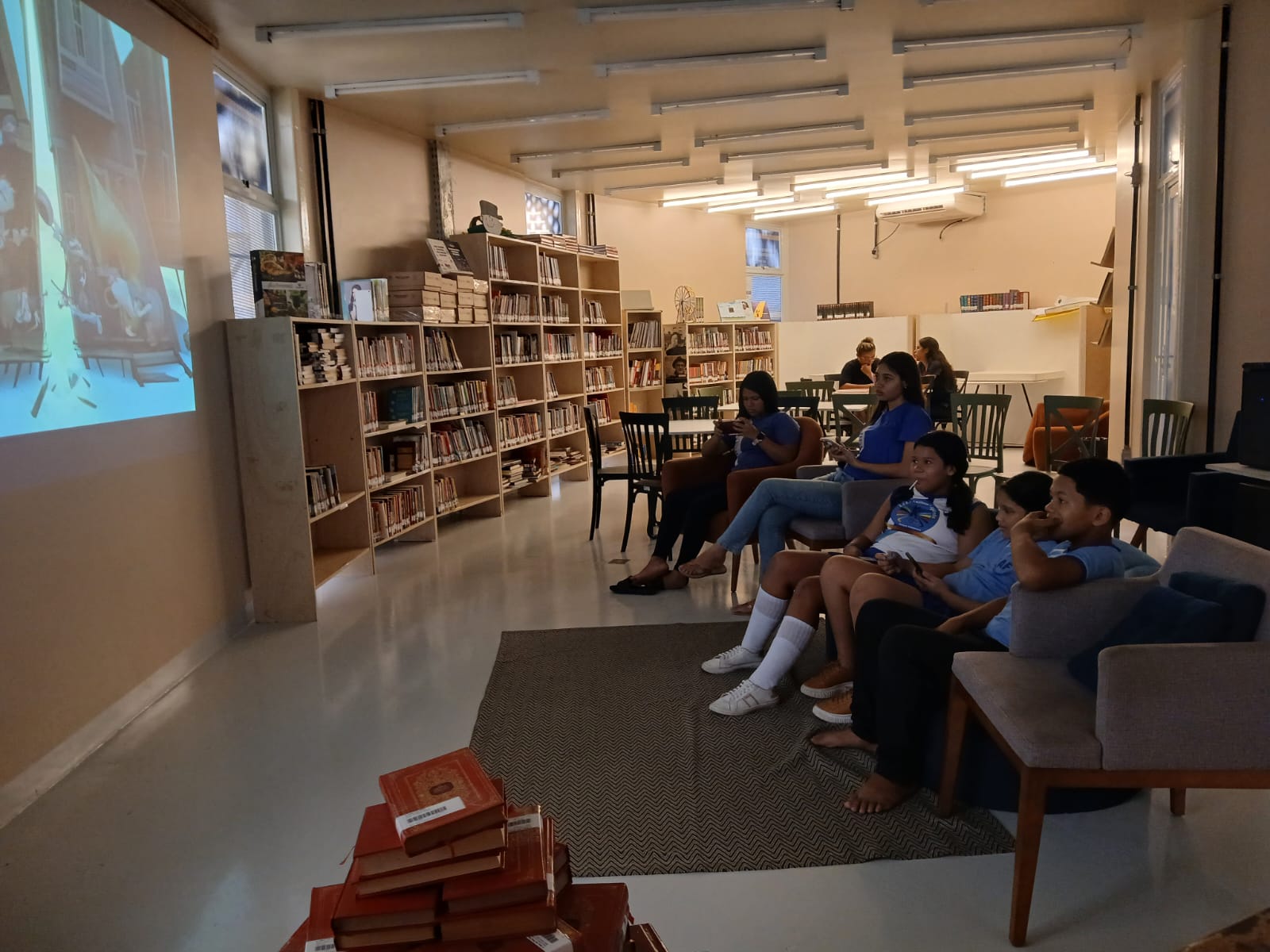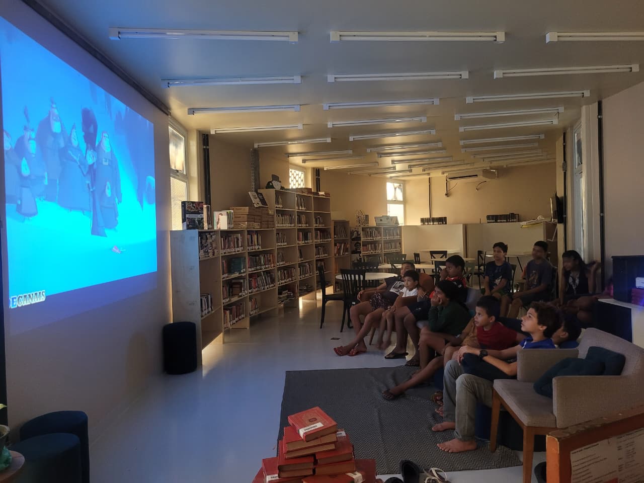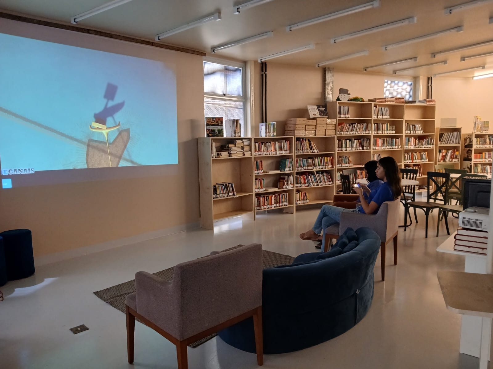 Embora a biblioteca funcione prioritariamente como um espaço de apoio logístico, durante o evento ela é ambientada de forma especial, tornando-se um cenário acolhedor e acessível para os participantes. A proposta busca estimular a interação entre diferentes públicos, incluindo crianças atípicas, garantindo um ambiente preparado e sensível às necessidades de todos. Assim, o uso do cinema se torna uma ferramenta educativa que incentiva o diálogo, a imaginação e a construção de vínculos.