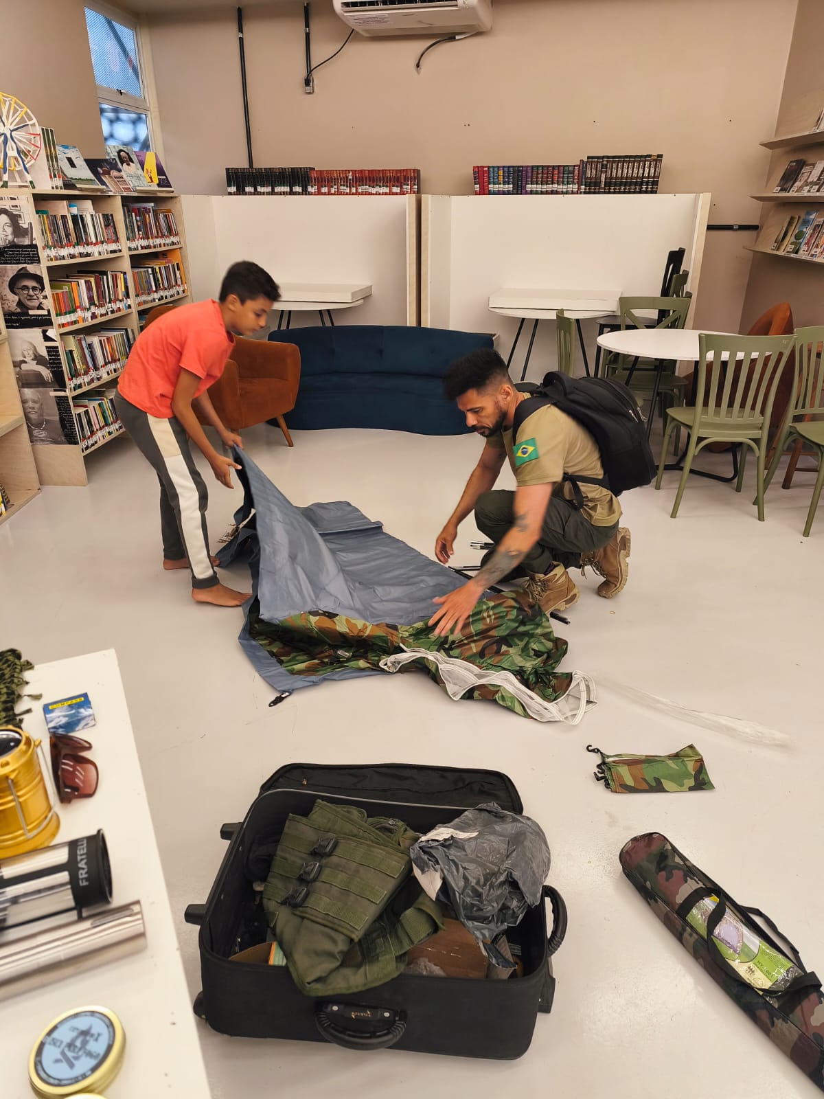 A Oficina de Sobrevivência na Selva e Educação Ambiental, realizada na biblioteca com o Grupo de Sobrevivência do Norte e ministrada pelo instrutor Jefferson Valadares, proporcionou uma experiência educativa diferenciada, unindo conhecimento prático, conscientização ambiental e momentos de integração. A atividade foi pensada para aproximar os participantes de temas relacionados à preservação da natureza, ao respeito ao meio ambiente e às técnicas básicas de sobrevivência, de forma acessível e dinâmica.