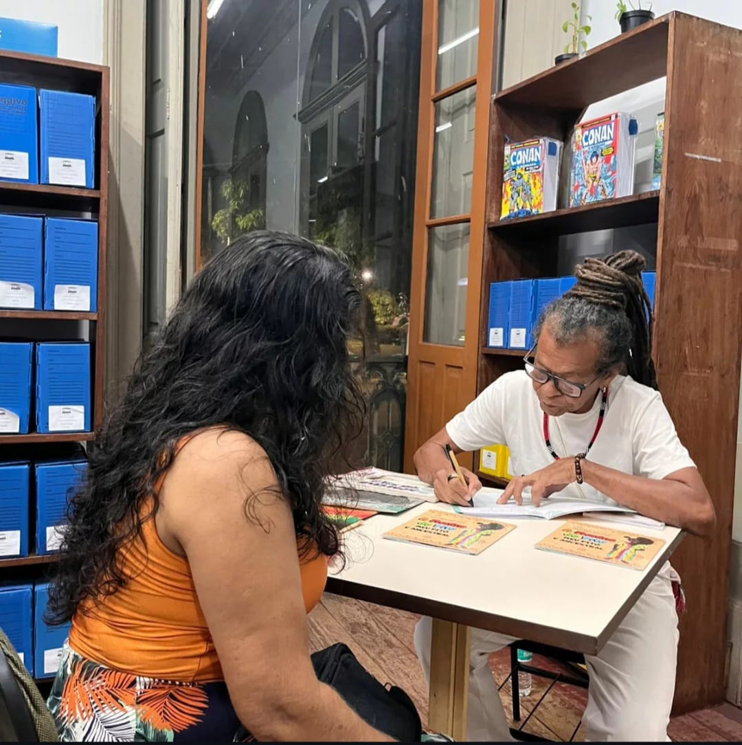 Neste último domingo, 19 de outubro, a Biblioteca Francisco Paulo Mendes, localizada na Casa da Linguagem, foi cenário de um dos momentos mais envolventes da Feira da Casa: a contação de histórias com a professora Janete Borges.