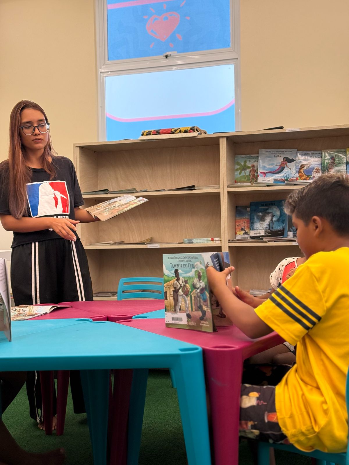 O evento foi conduzido pela narradora que trouxe vida ao livro através da expressão corporal, variação de voz e interatividade com o público. A leitura dramatizada envolveu os ouvintes, criando um ambiente mágico onde os sons dos tambores, os ritmos e os personagens do Tambor do Curiaú pareciam ganhar vida. As crianças, participaram ativamente, repetindo trechos da história e expressando suas emoções a cada reviravolta da narrativa.