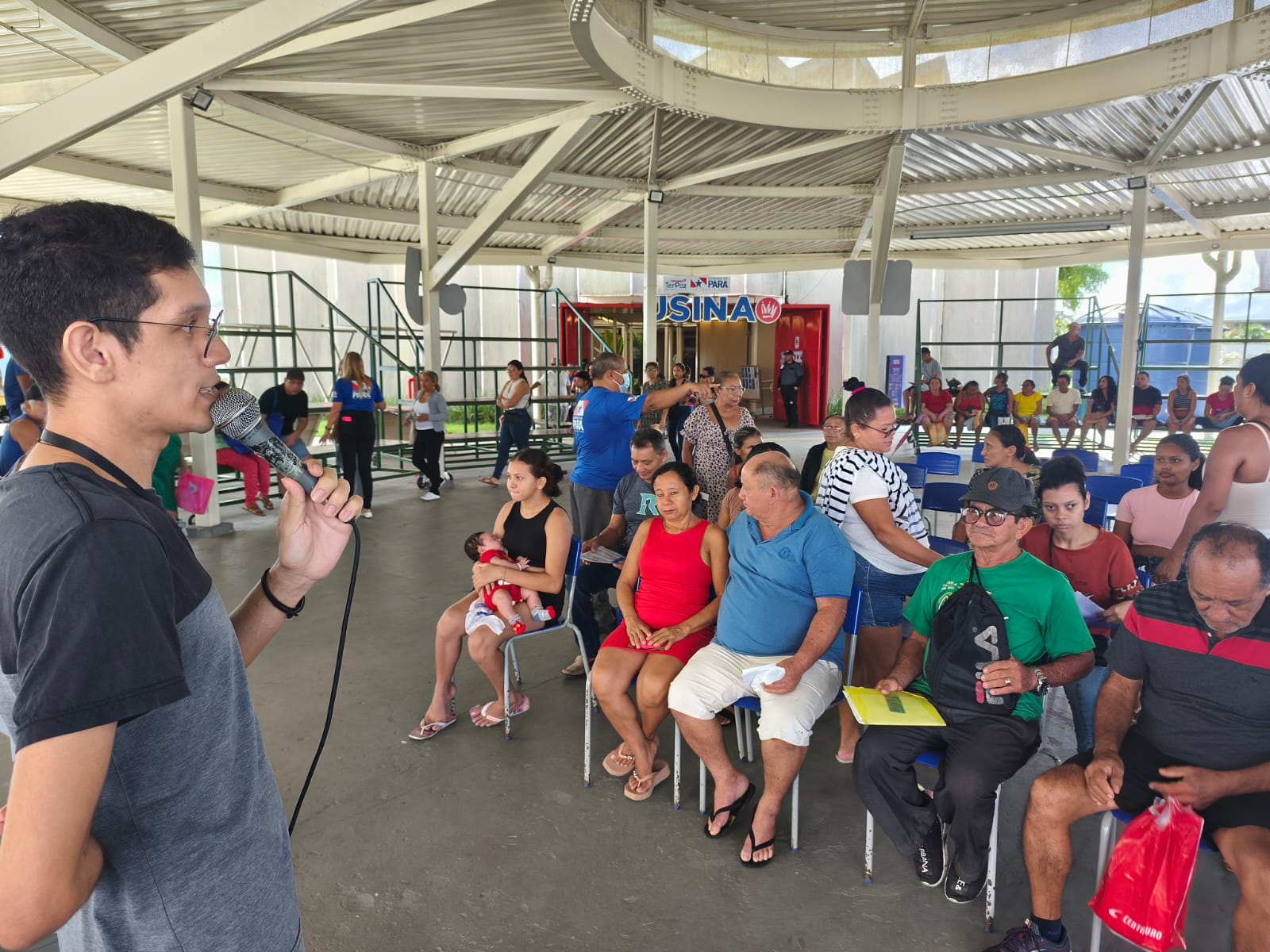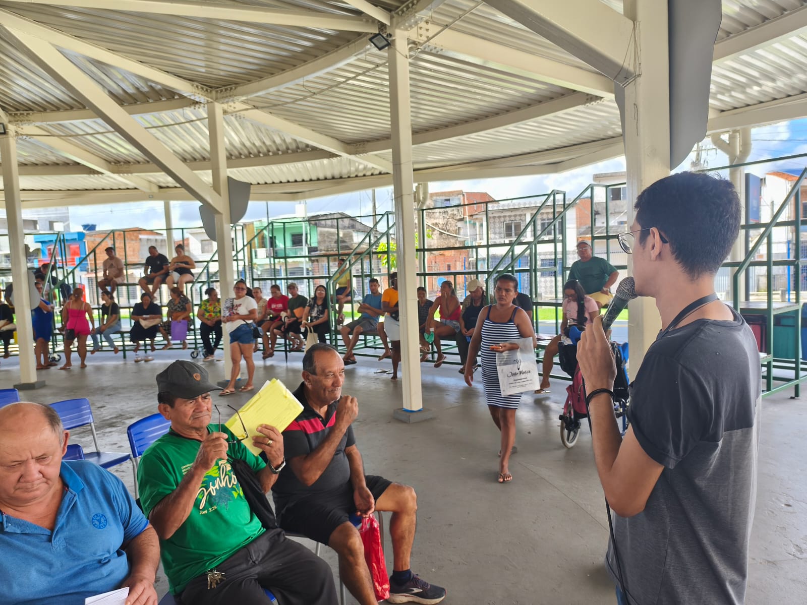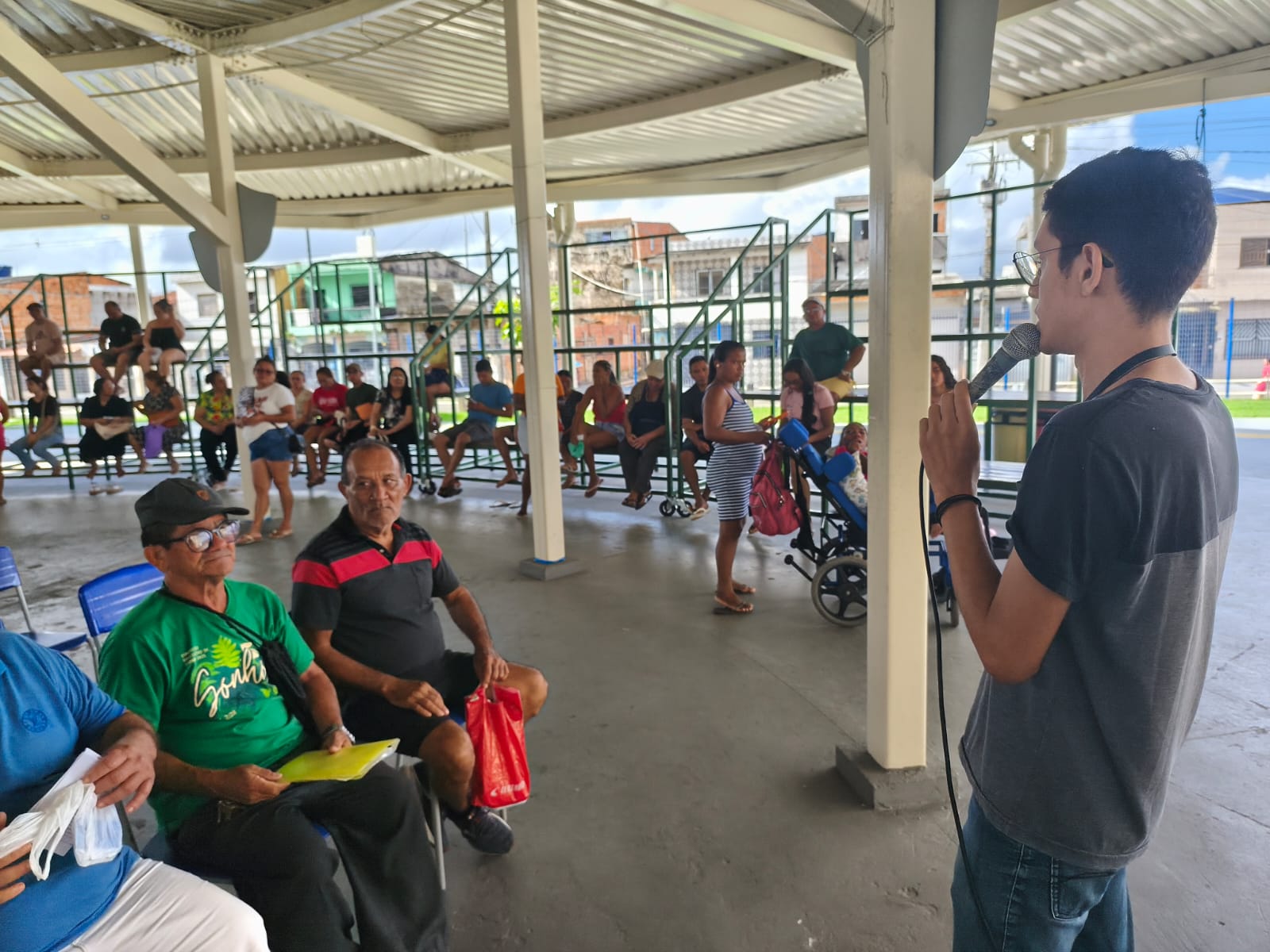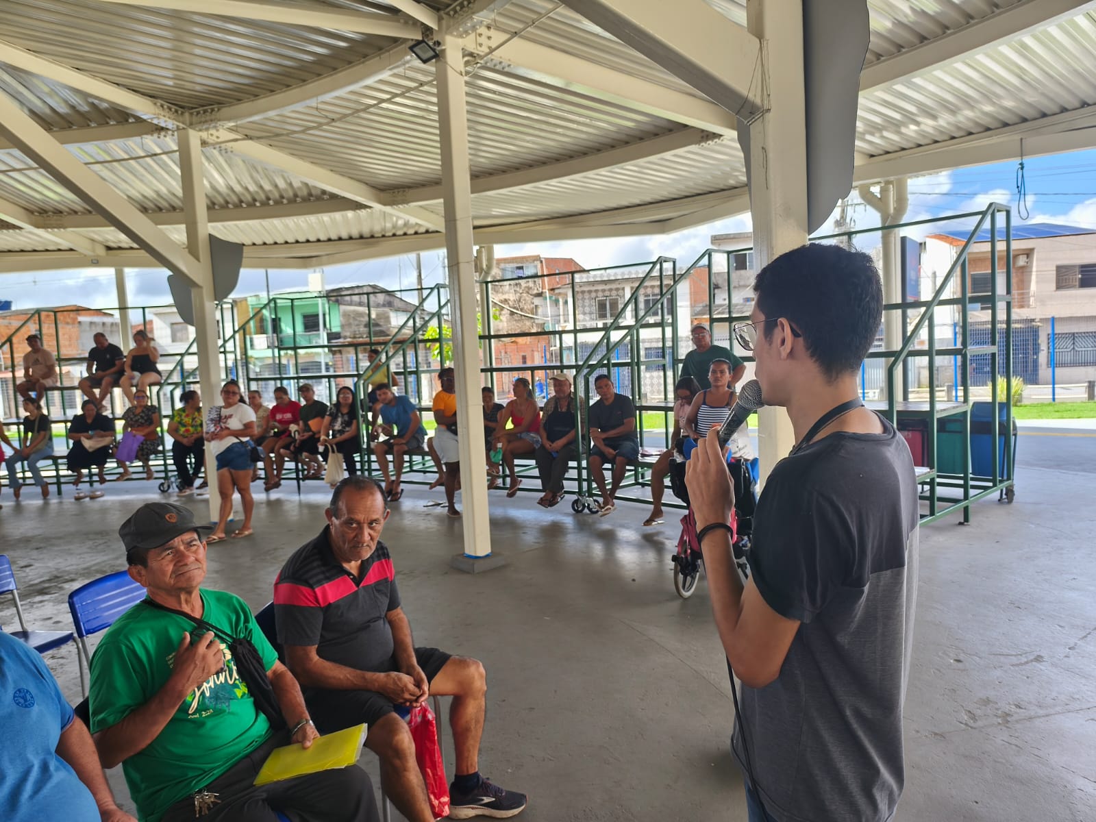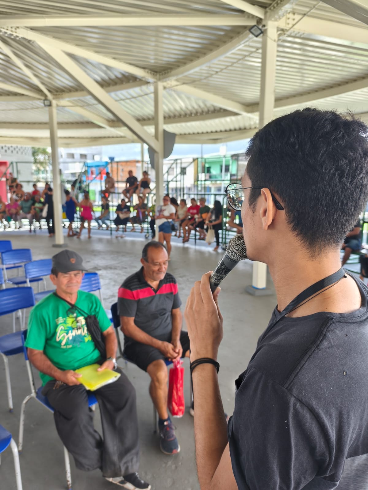 De forma objetiva e acessível, foi explicado à comunidade que o Art. 216-A caracteriza como crime constranger alguém com o intuito de obter vantagem ou favorecimento sexual, prevalecendo-se o autor da sua condição de superior hierárquico ou ascendência inerente ao exercício de emprego, cargo ou função. A fala destacou que o assédio sexual é uma violação de direitos, passível de responsabilização legal, e que reconhecer essas situações é fundamental para a proteção das vítimas.