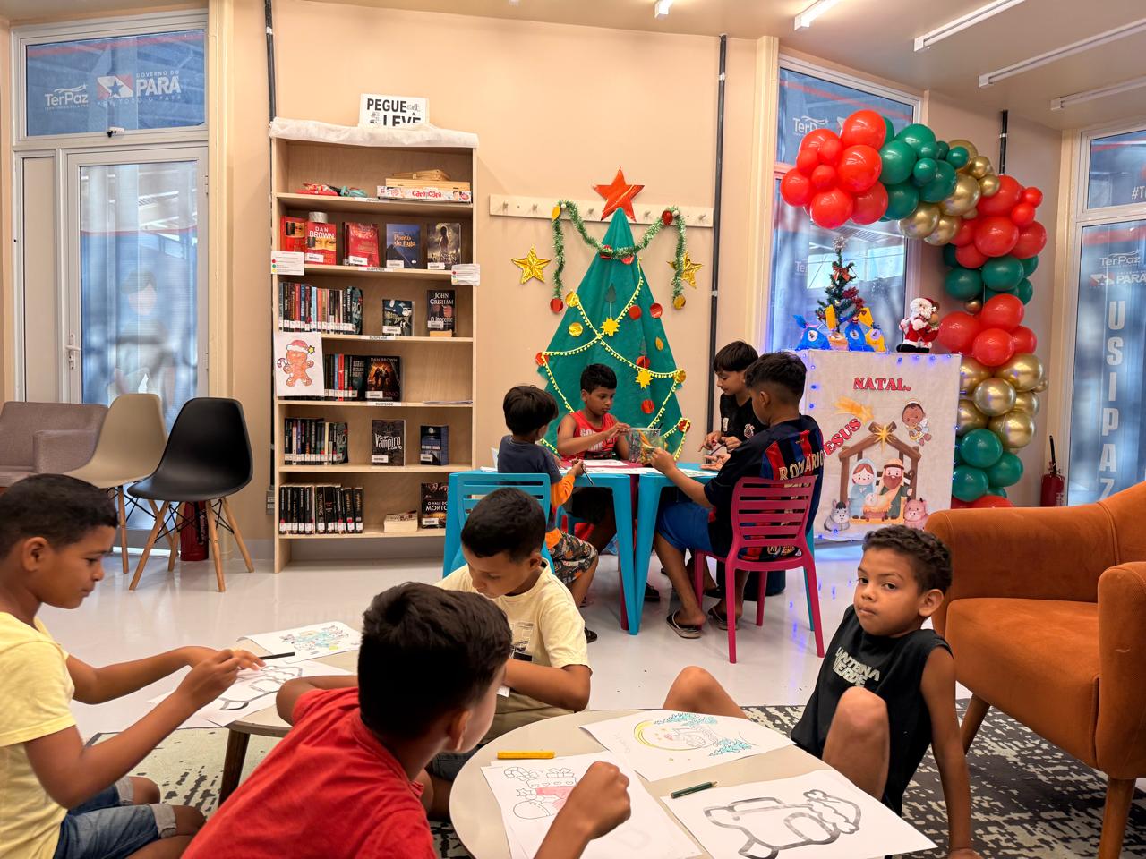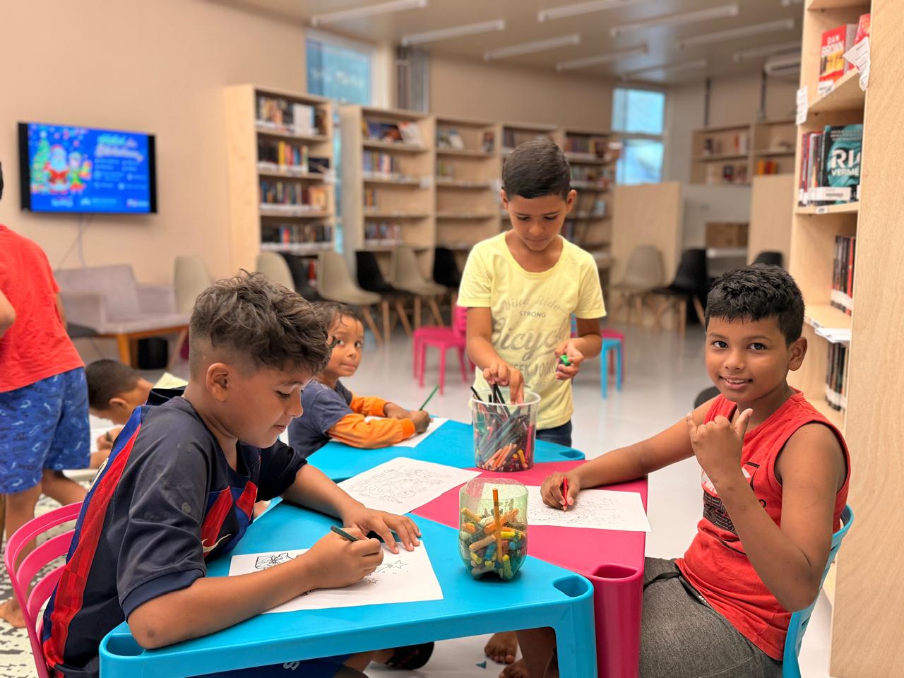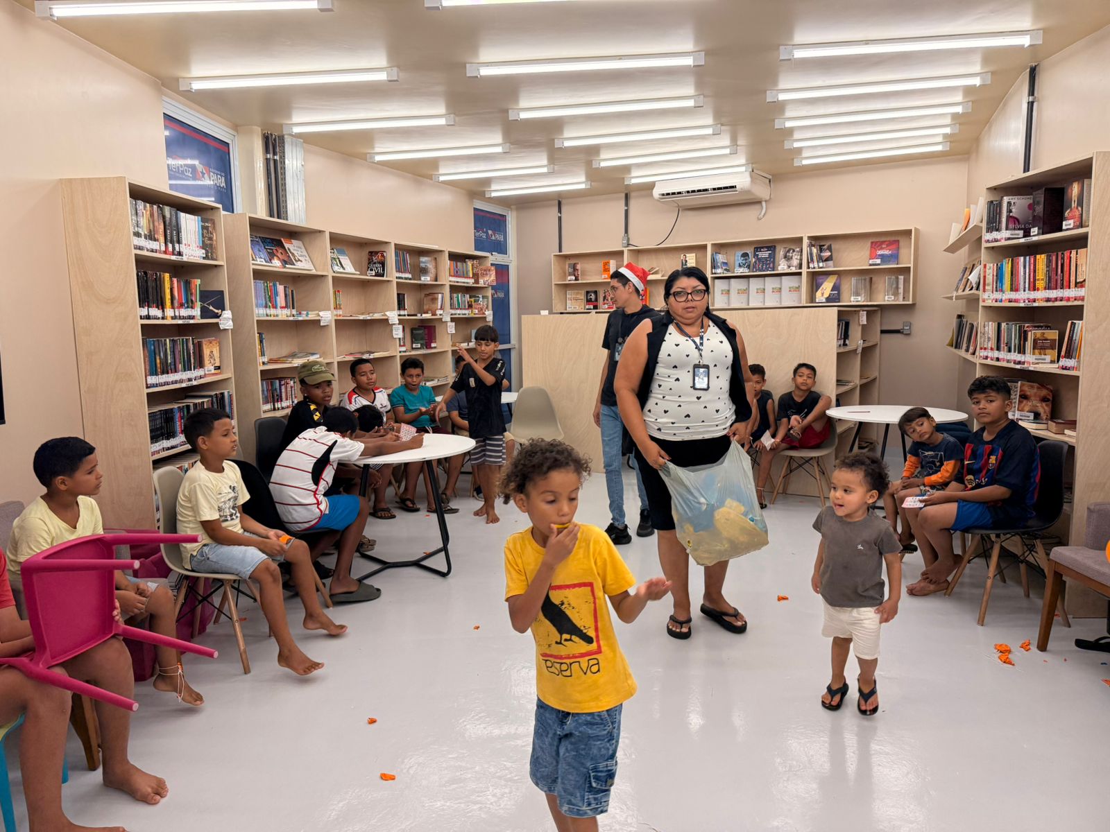 A biblioteca foi tomada pelo clima natalino em uma tarde especial repleta de cores, risadas e muita interação. A festa de Natal reuniu crianças e famílias em um momento de celebração, convivência e diversão, reforçando a biblioteca como um espaço de encontro e alegria para a comunidade.